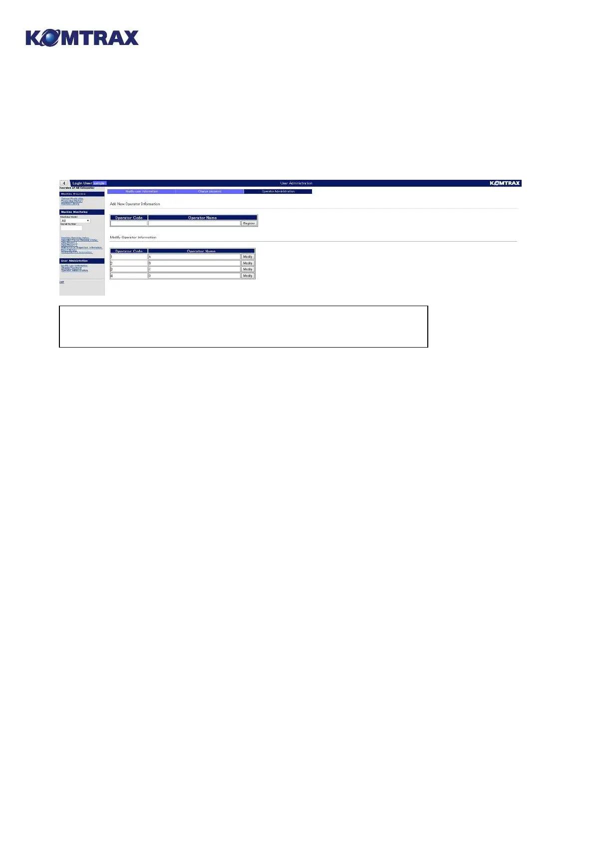 Komatsu KOMTRAX - Operator Administration