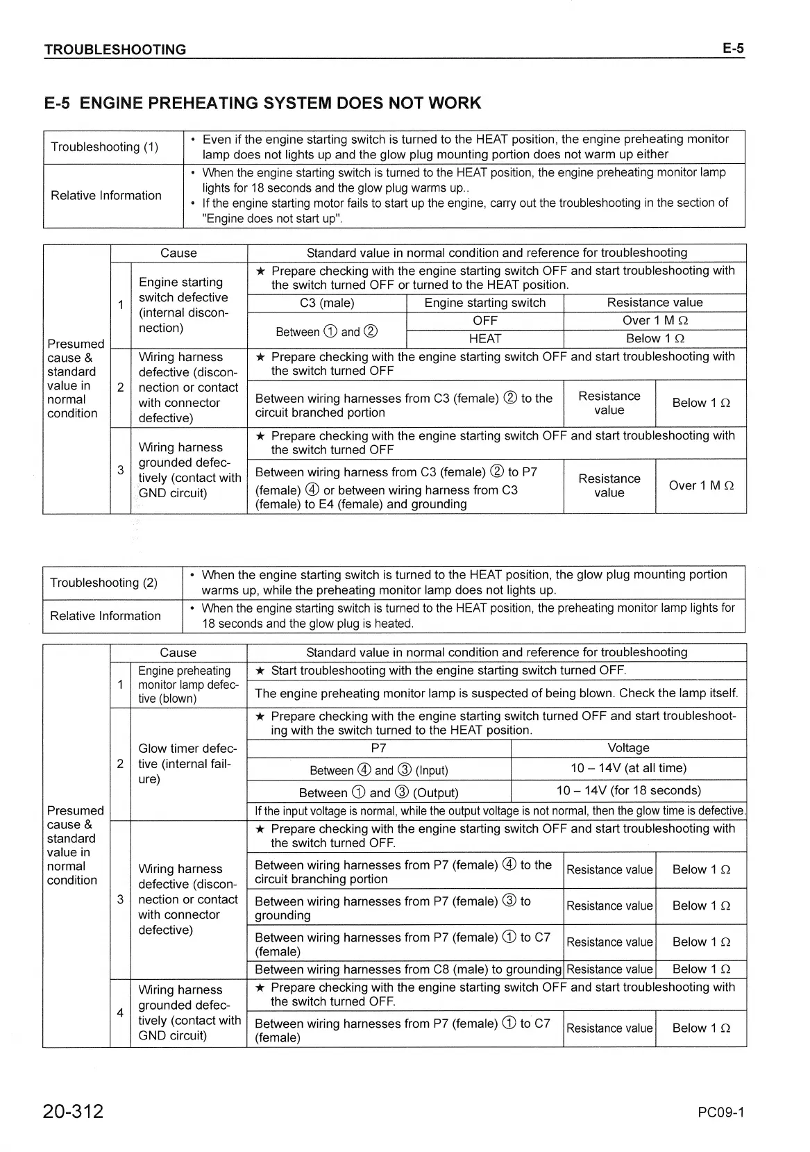 Komatsu PC09-1 - E-5 ENGINE PREHEATING SYSTEM DOES NOT WORK