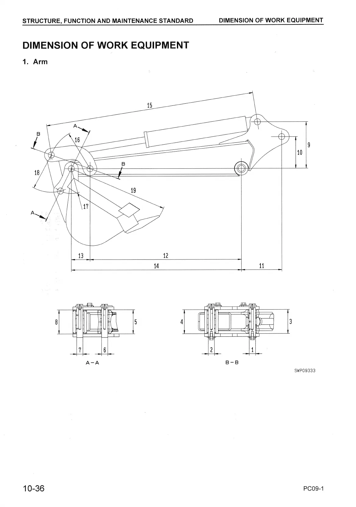 Komatsu PC09-1 - DIMENSION OF WORK EQUIPMENT