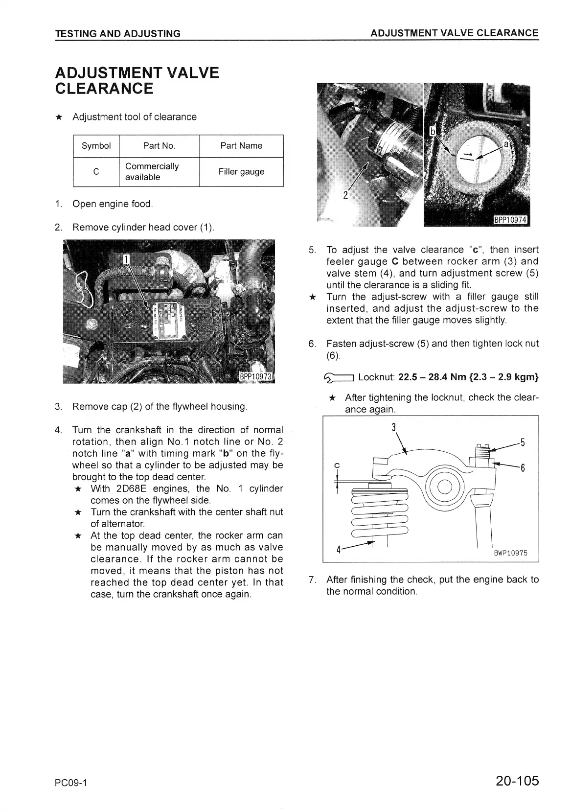 Komatsu PC09-1 - ADJUSTMENT VALVE CLEARANCE