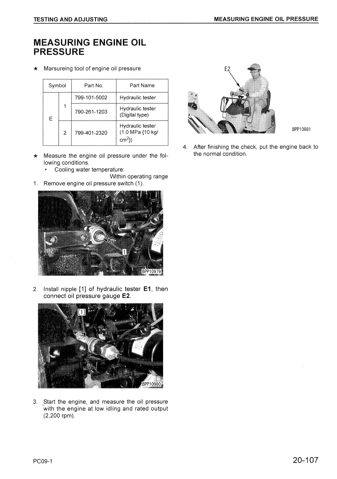 Komatsu PC09-1 - MEASURING ENGINE OIL PRESSURE