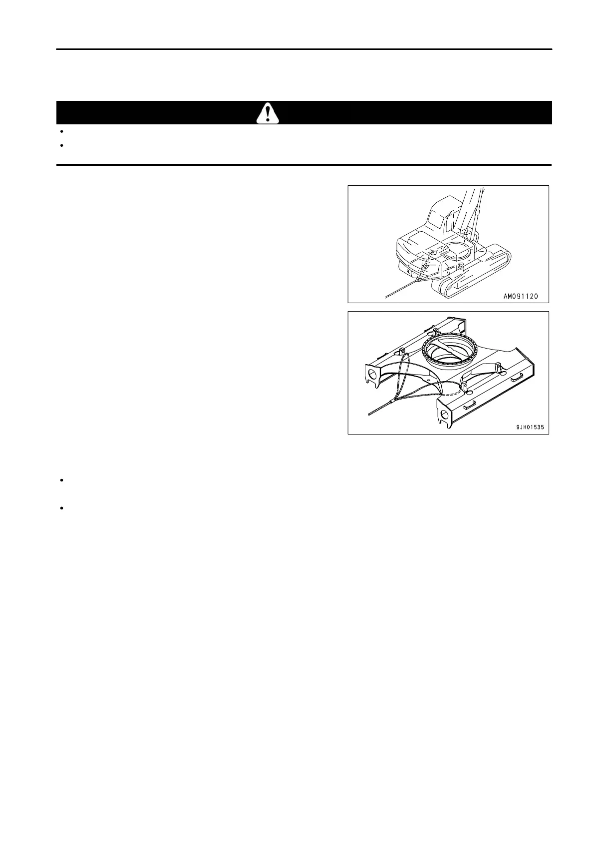 When towing the machine, use a wire rope that has ample strength for the weight of the machine that is being towed.