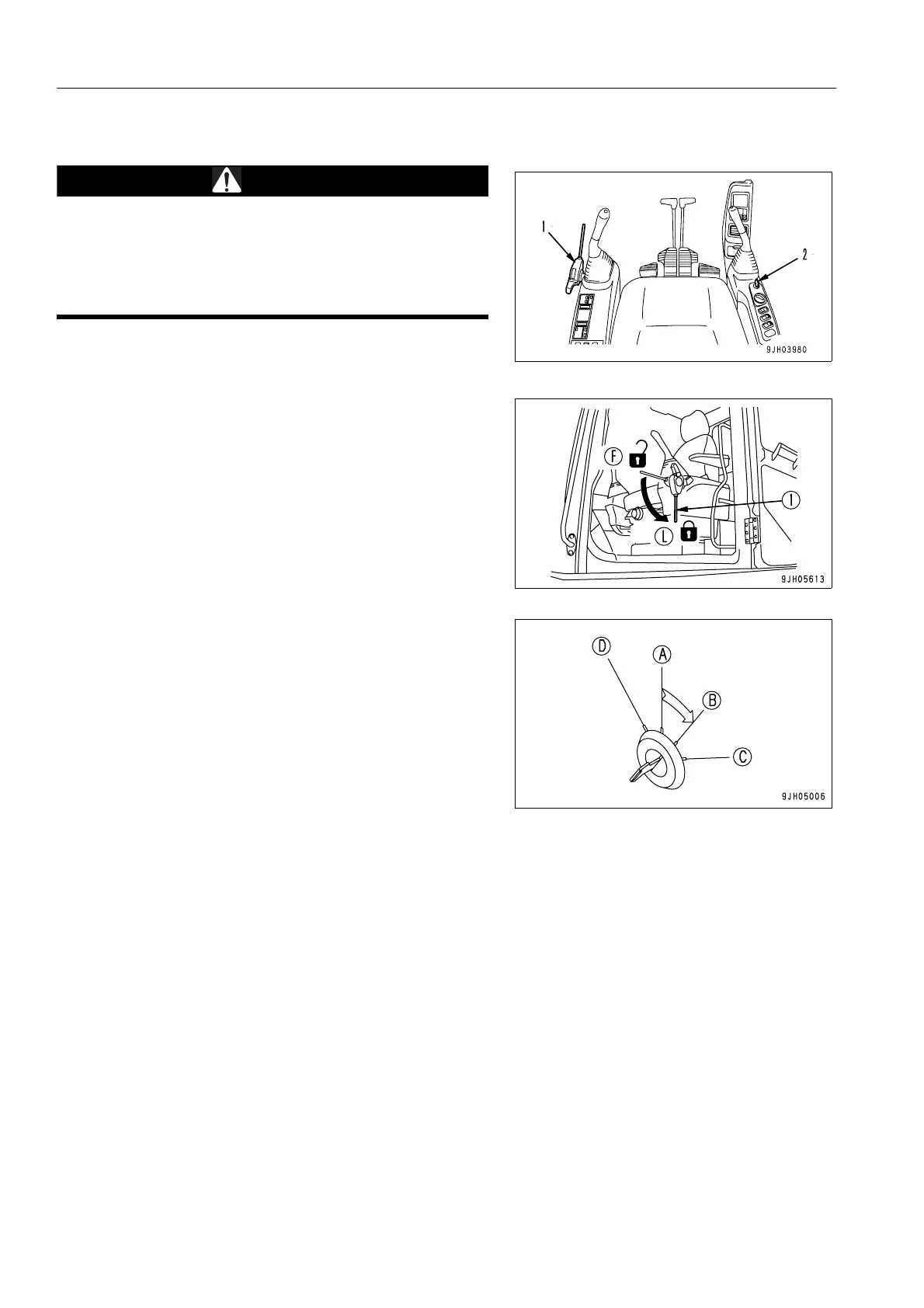 1. Check that safety lock lever (1) is at the LOCK position (L).