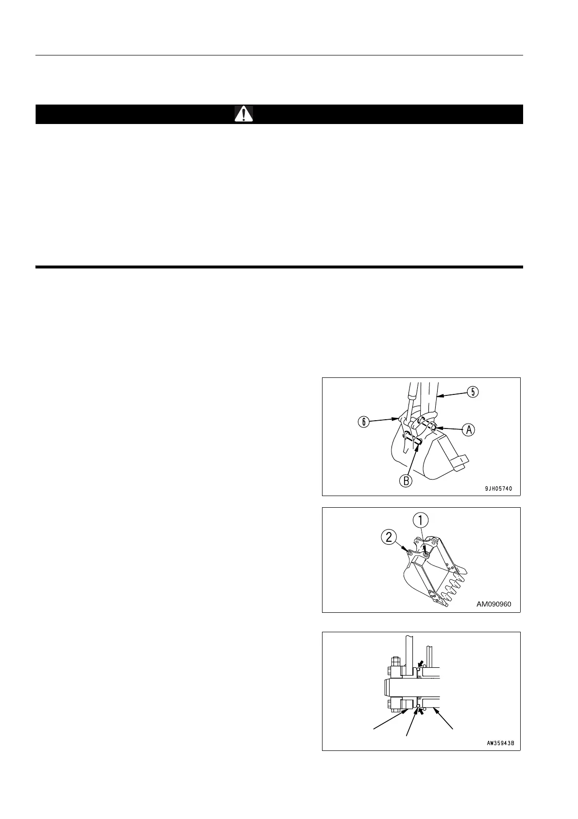 q When removing the pins, do not stand behind the bucket. In addition, be extremely careful not to put
