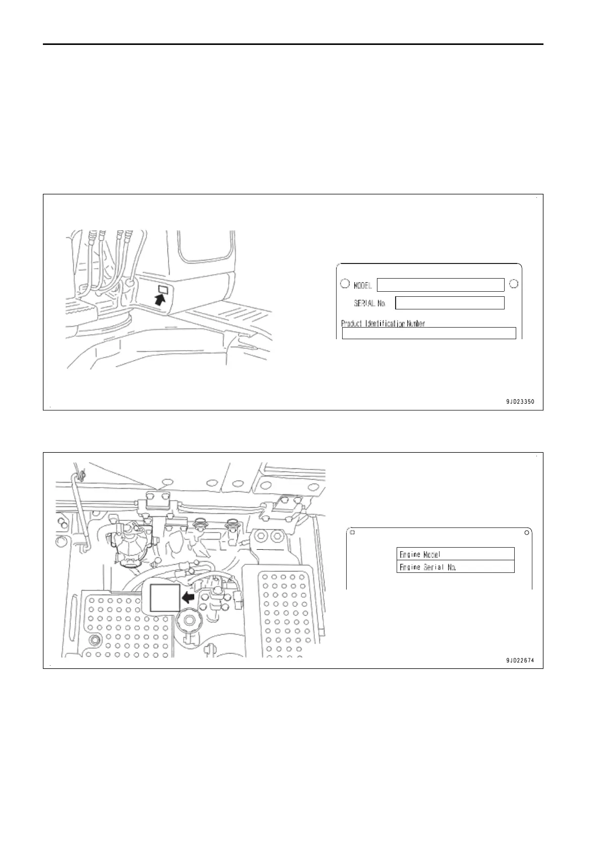 When requesting service or ordering replacement parts, inform your Komatsu distributor of the following items.