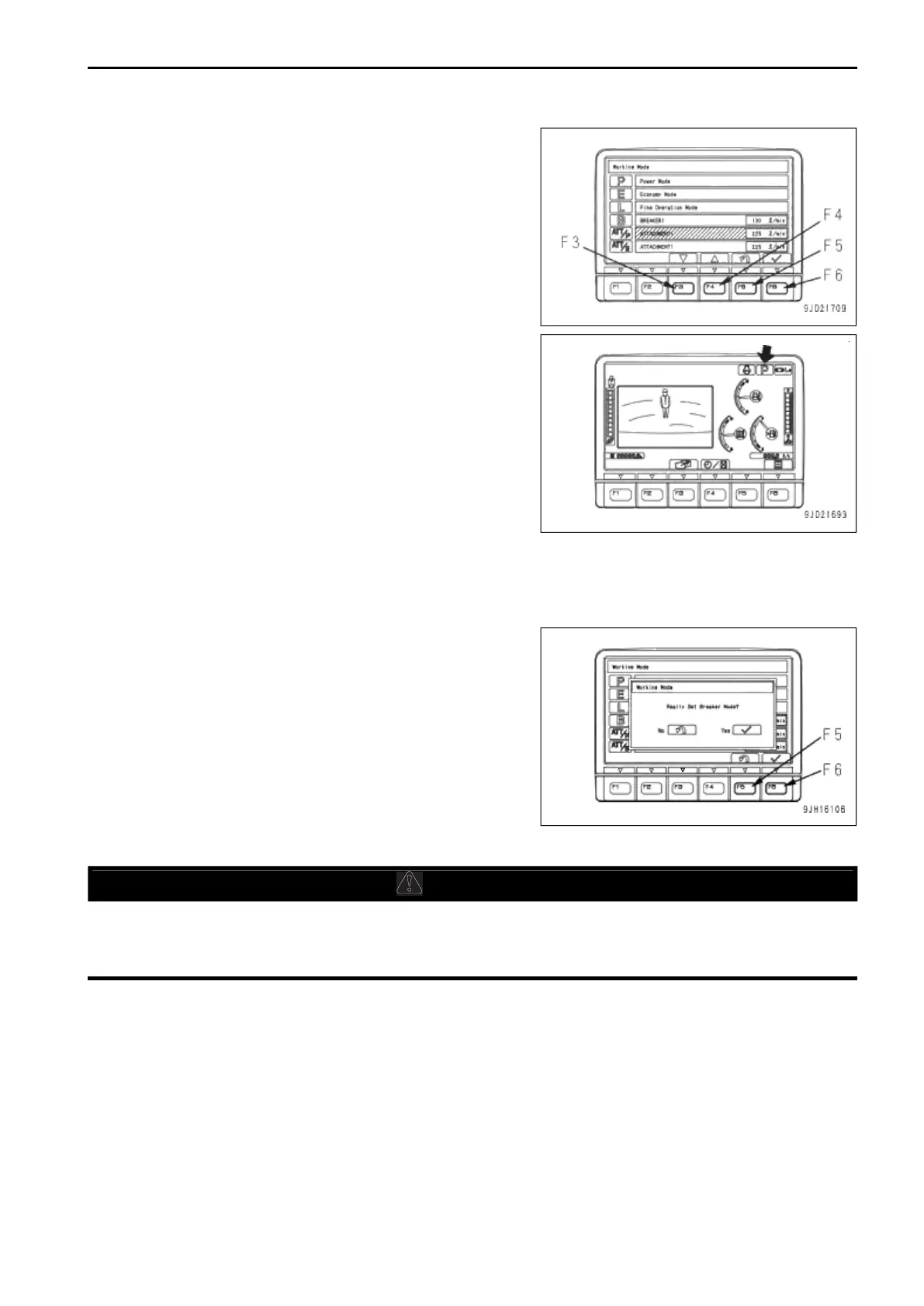 • If a working mode is selected and working mode selector switch (1) is kept pressed, the selected mode