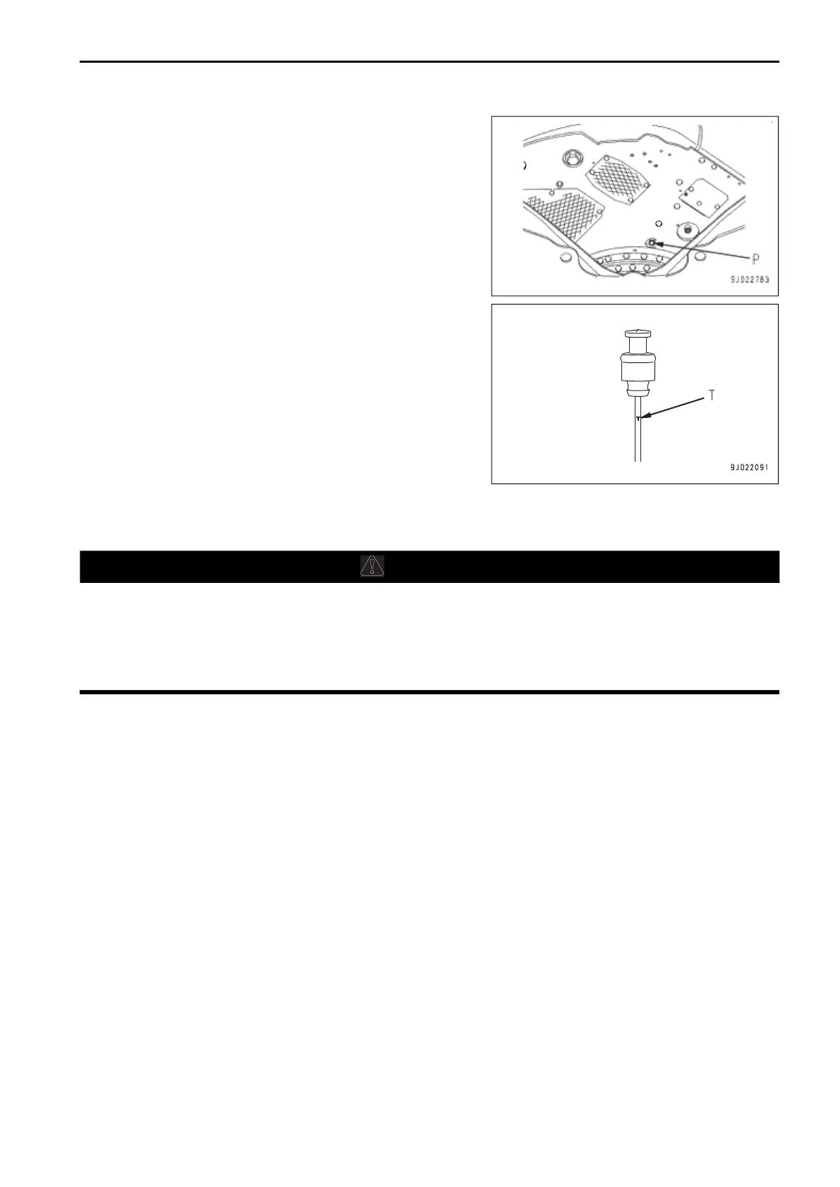 Loosen drain valve (P) and drain excessive oil.