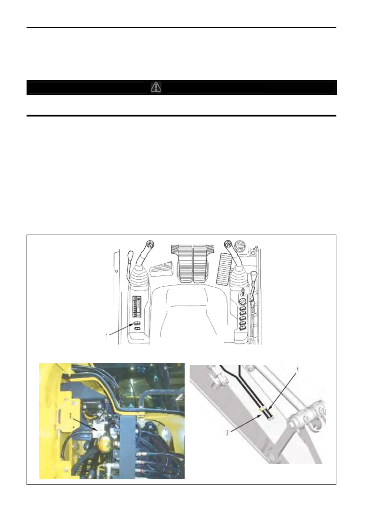 • Pressure regulation valve (2) allows the attachment pressure and the release pressure for the quick coupler