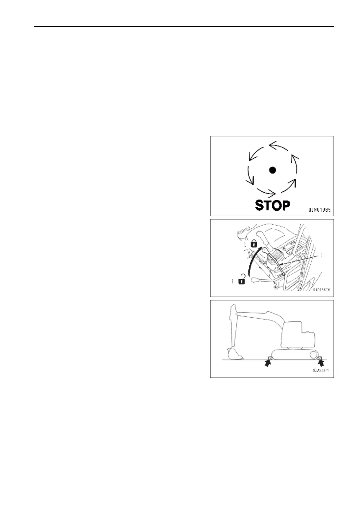 • Lower the work equipment to the ground and stop the en-