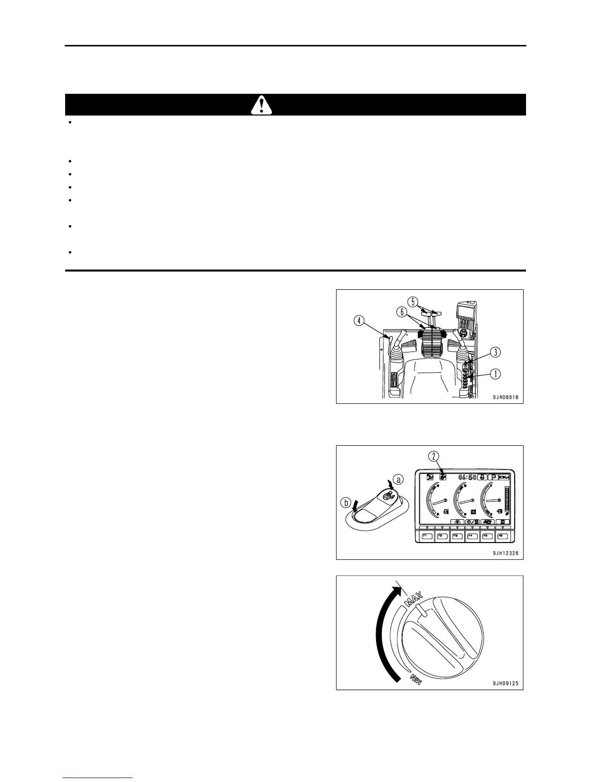 When the auto-deceleration is being used, if the travel lever or travel pedal are operated, the engine speed will suddenly rise,
