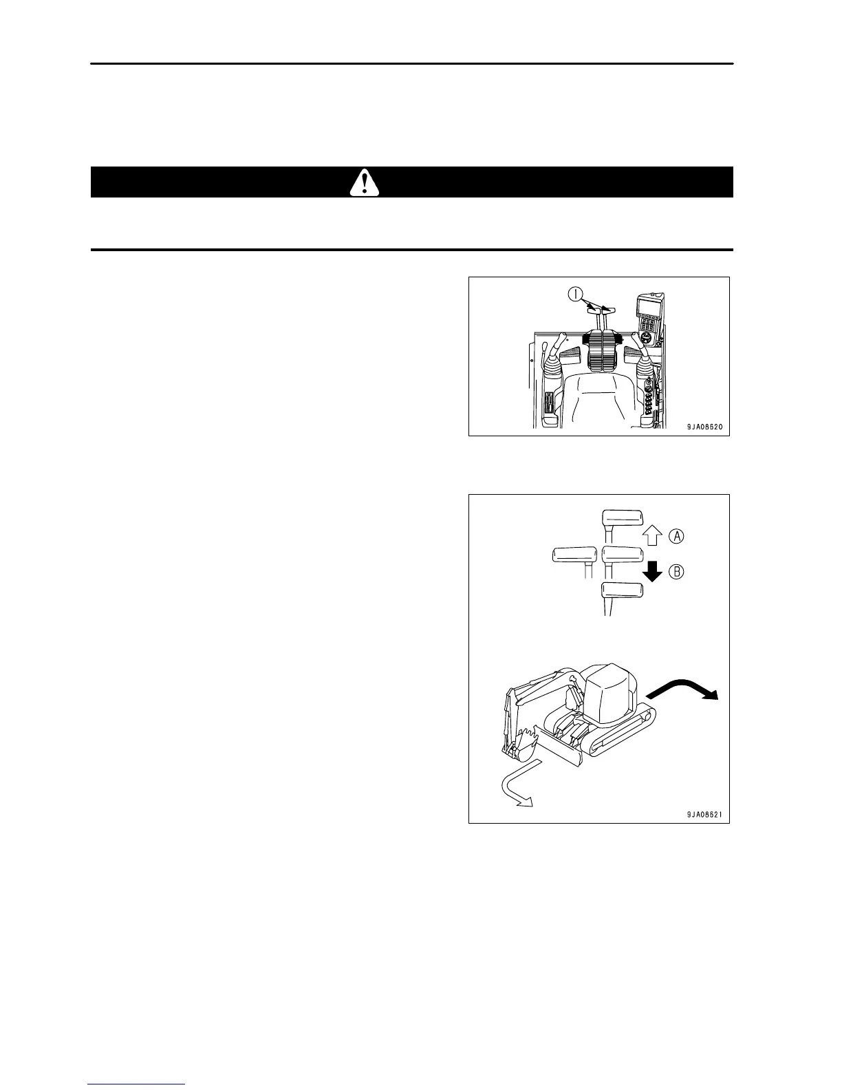 Before operating the travel levers, check the direction of the track frame (the position of the sprocket). If the sprocket is at the rear,