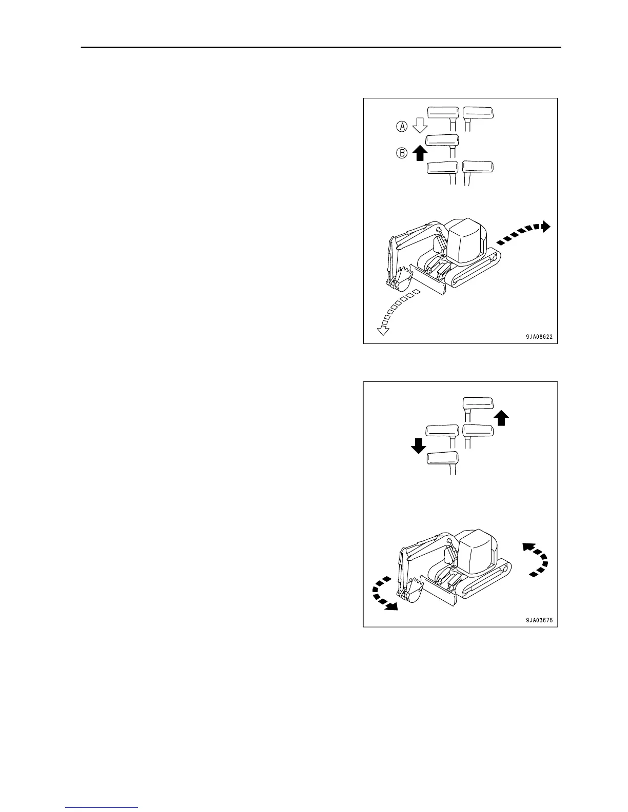 travel lever back and push the right travel lever forward.
