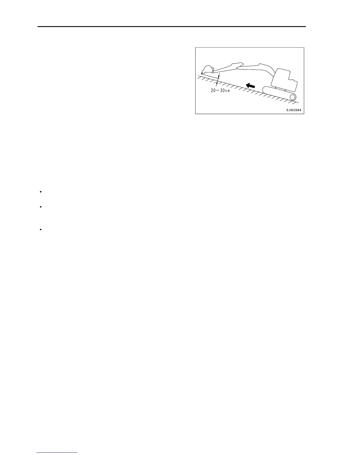 If the engine stops when traveling uphill, move the travel levers to the neutral position, lower the bucket to the
