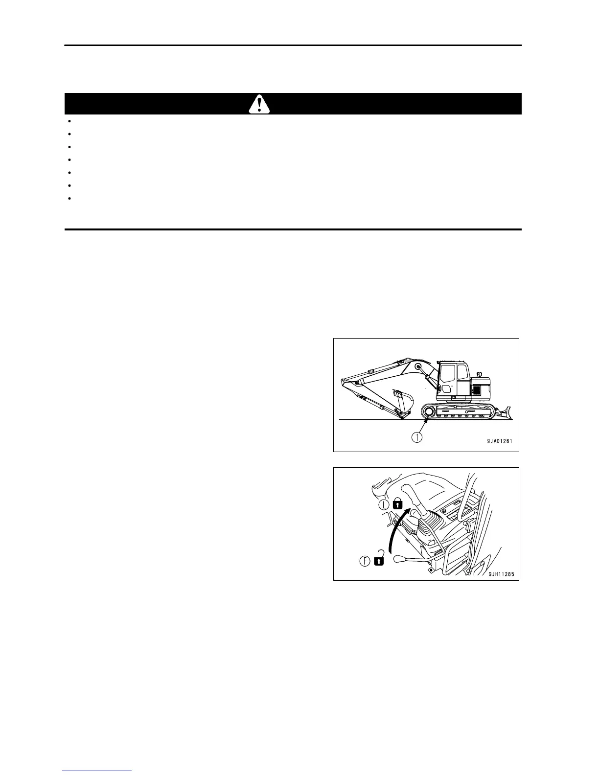 Stop the engine, check that there is nothing around the operator's compartment, then get off the machine.