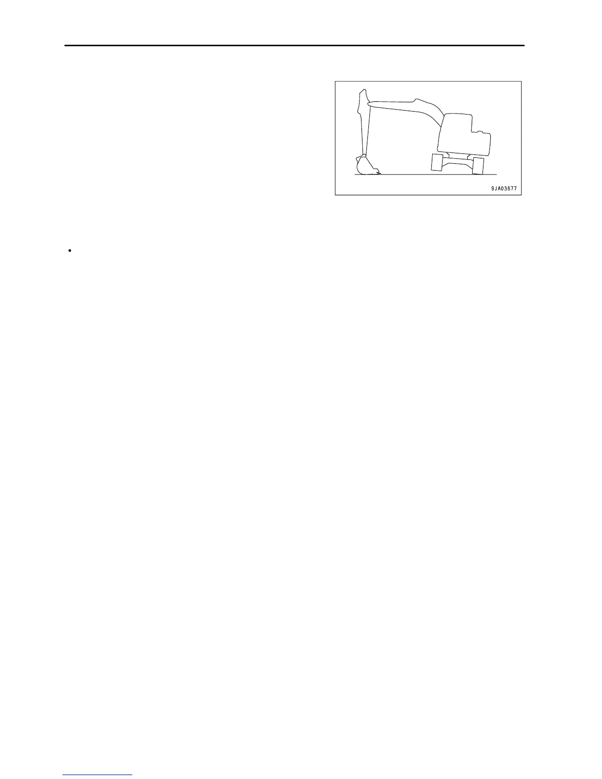 1. Swing 90° with engine at low idle and bring the work equipment