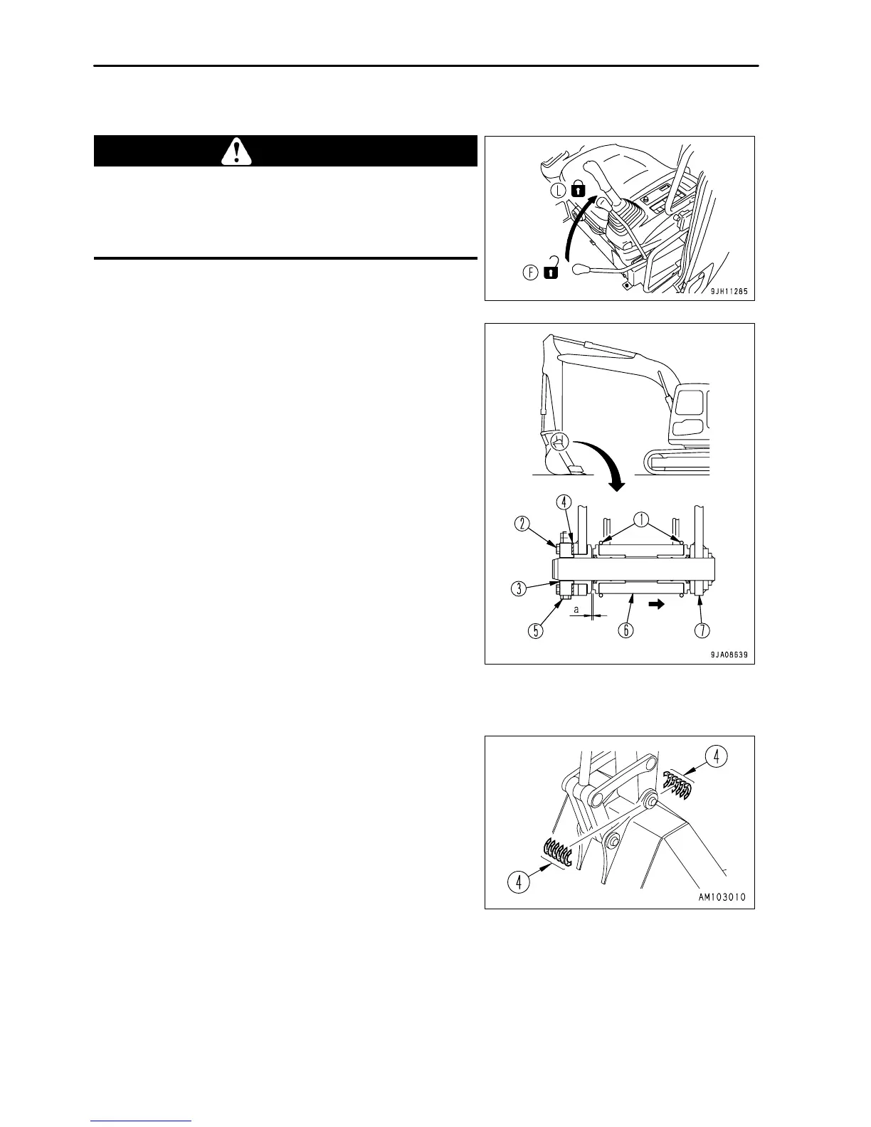 If the bolts (2) are too stiff to tighten, pull out pin stopper bolt (5)