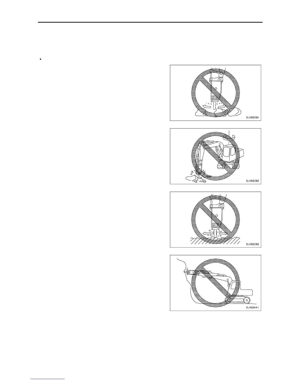 Do not operate all cylinders to the end of their strokes. Always leave approx. 5 cm (2 in) to spare.