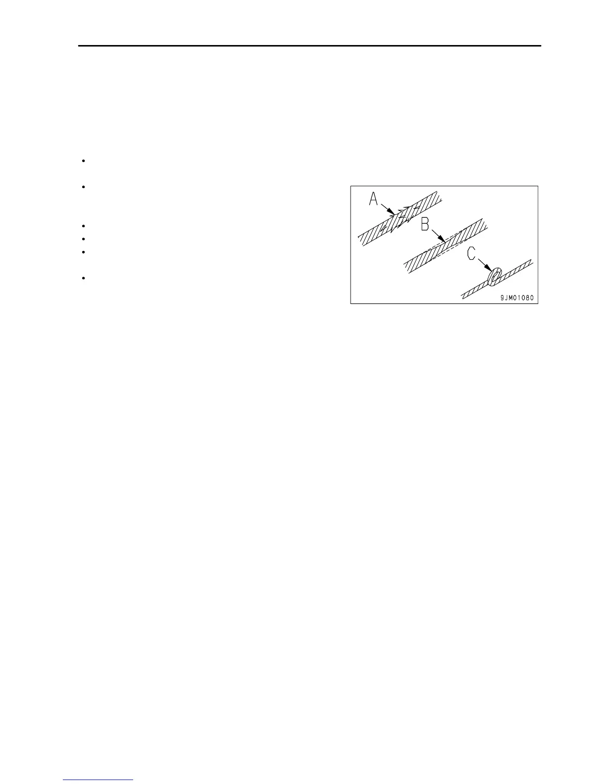 diameter (B), or kinks (C). There is danger that the rope may
