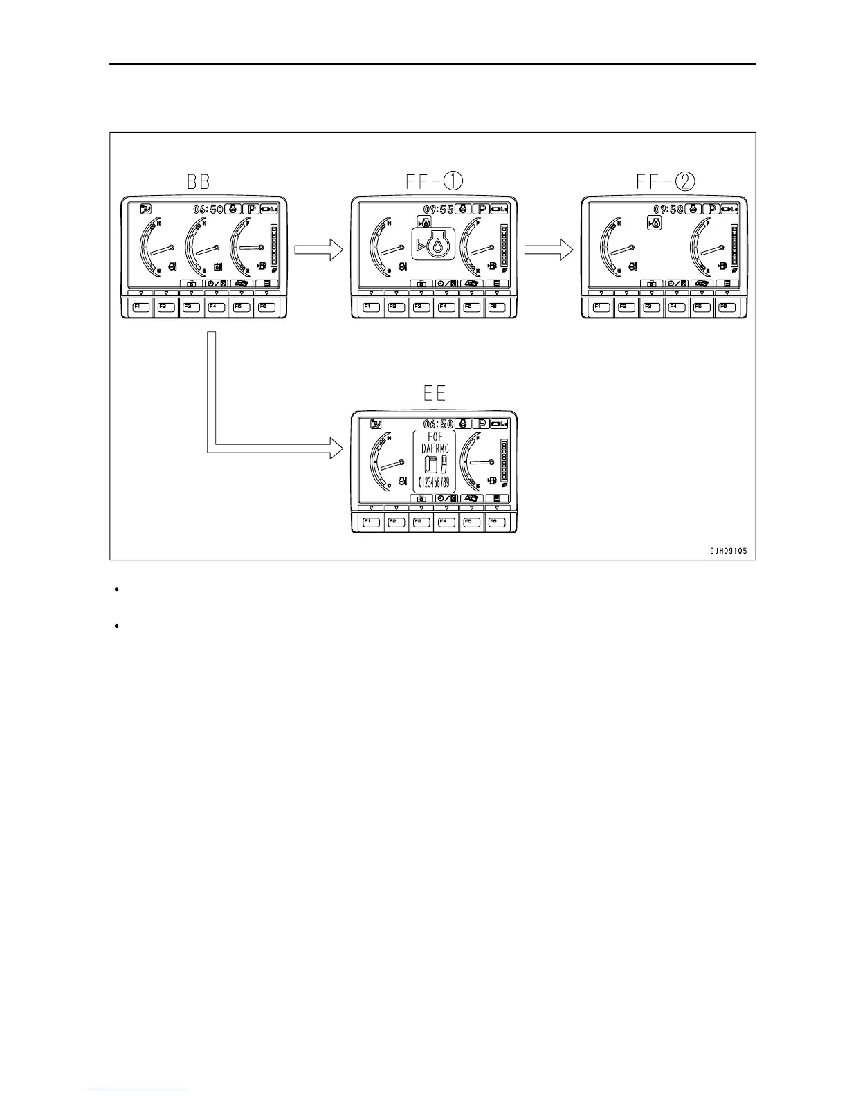 If any abnormality occurs during operation, the standard screen BB changes to warning screen FF-(1) or the error