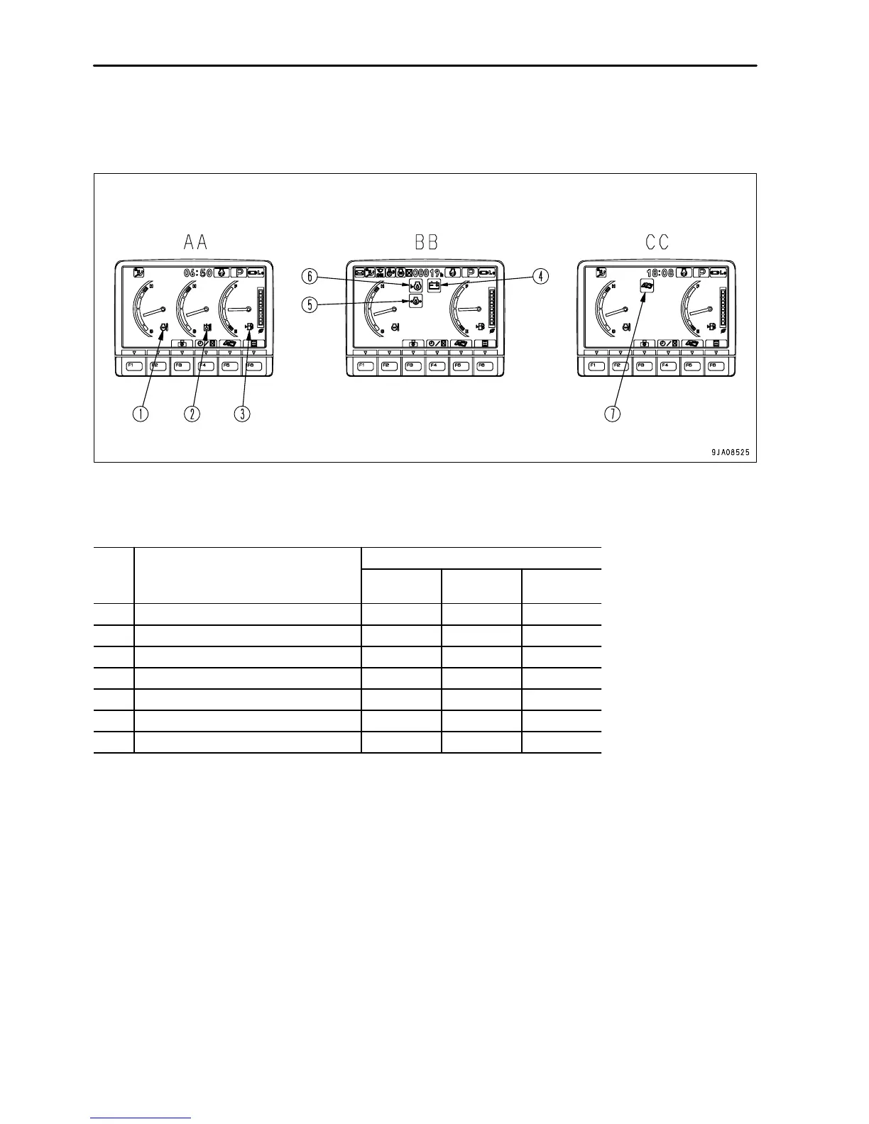 The colors lighting up the monitors related to the emergency stop items, caution items, and basic check items are