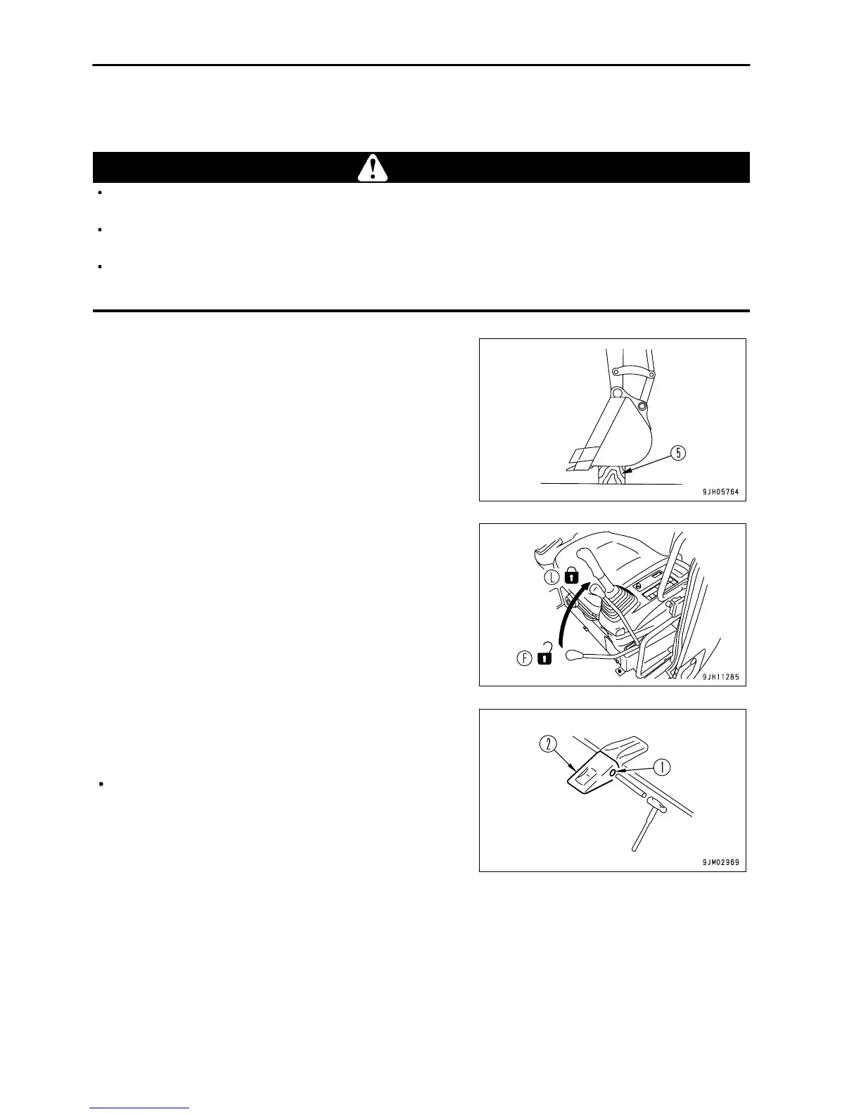 Set the work equipment in a stable condition, then stop the engine and set the lock lever securely to the LOCK position.
