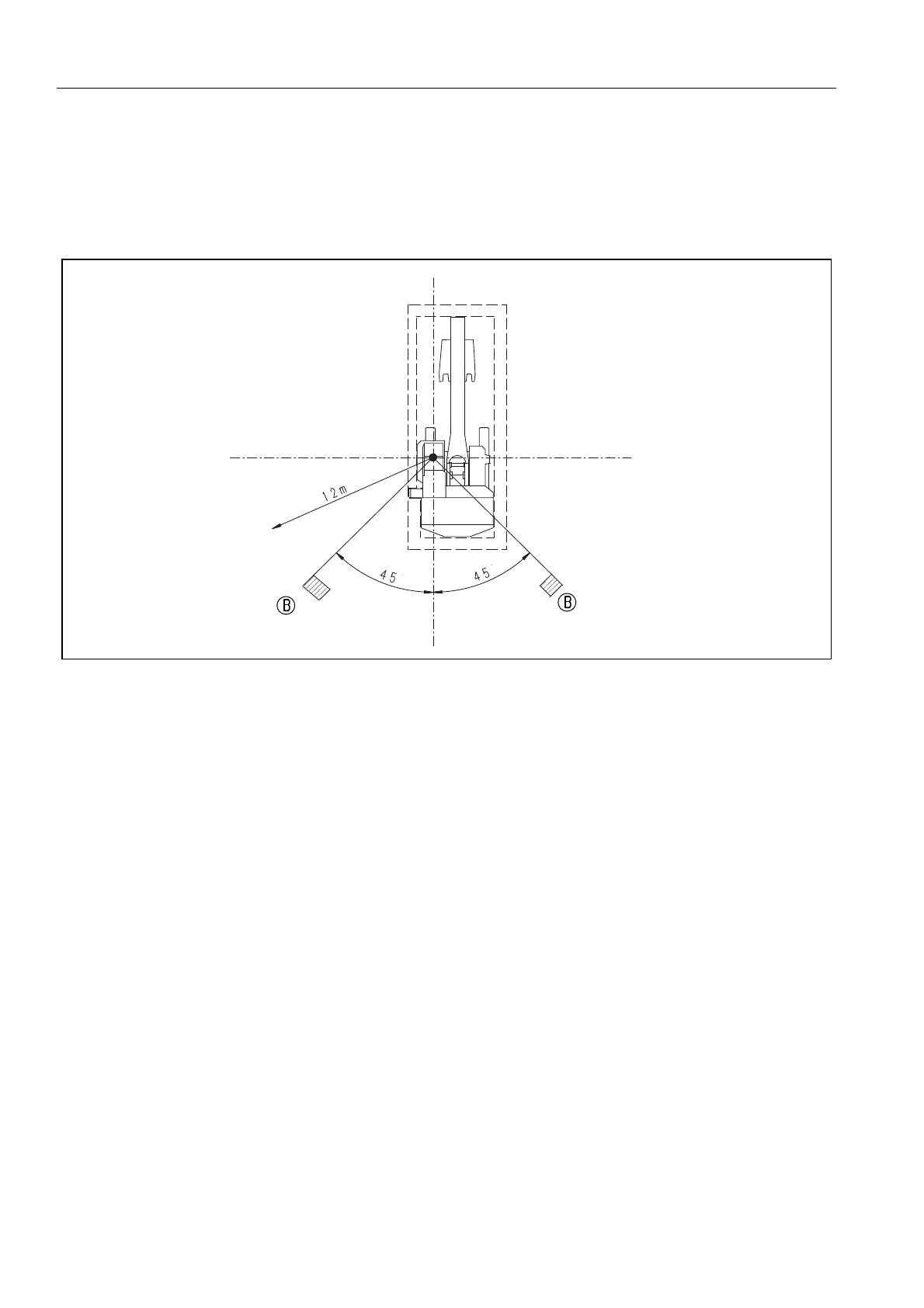 The visibility at a radius of 12 m from the machine is as shown in the diagram below. The hatched areas (B) show