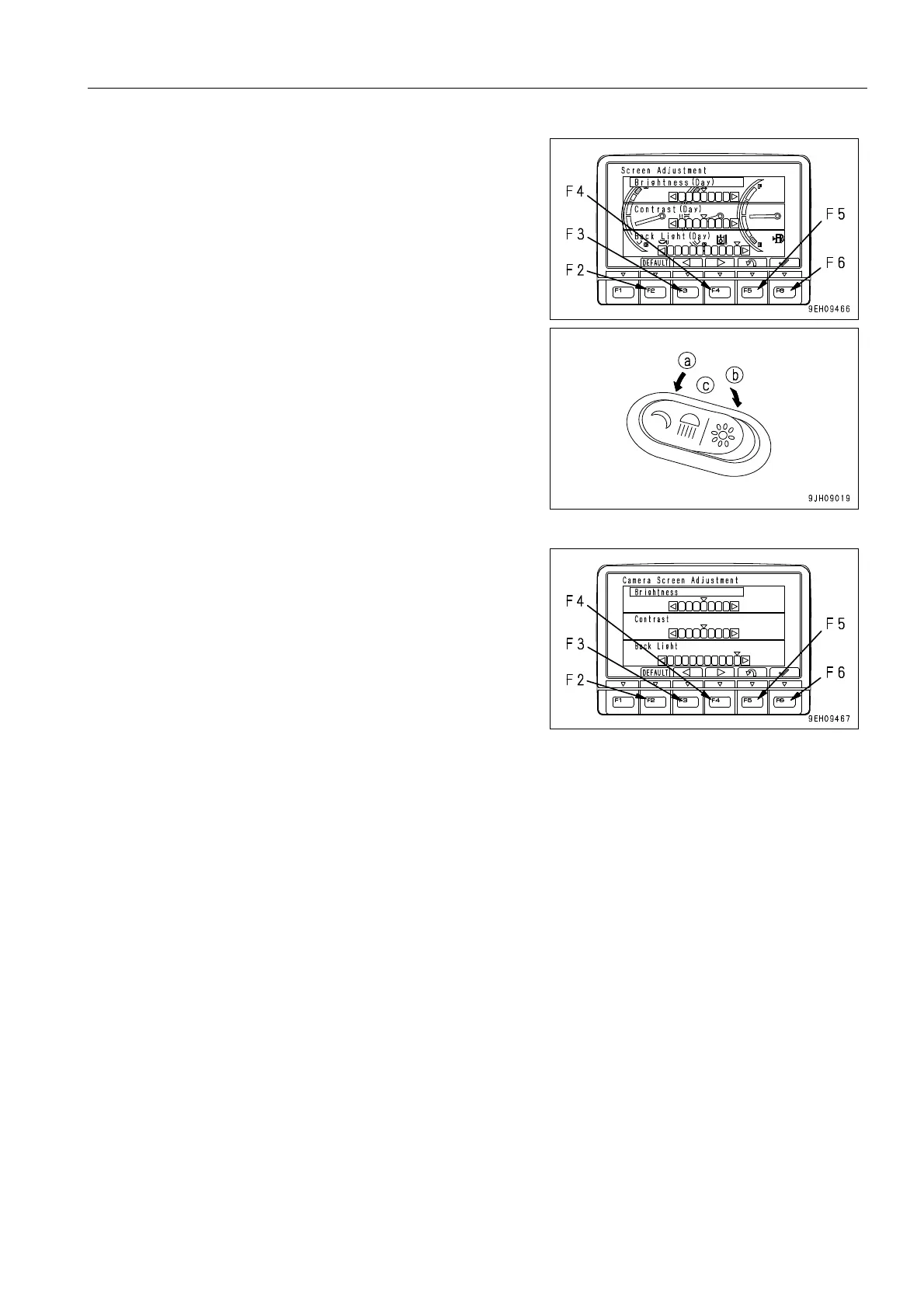 4. Use switches F2 to F6 to adjust the brightness, contrast,