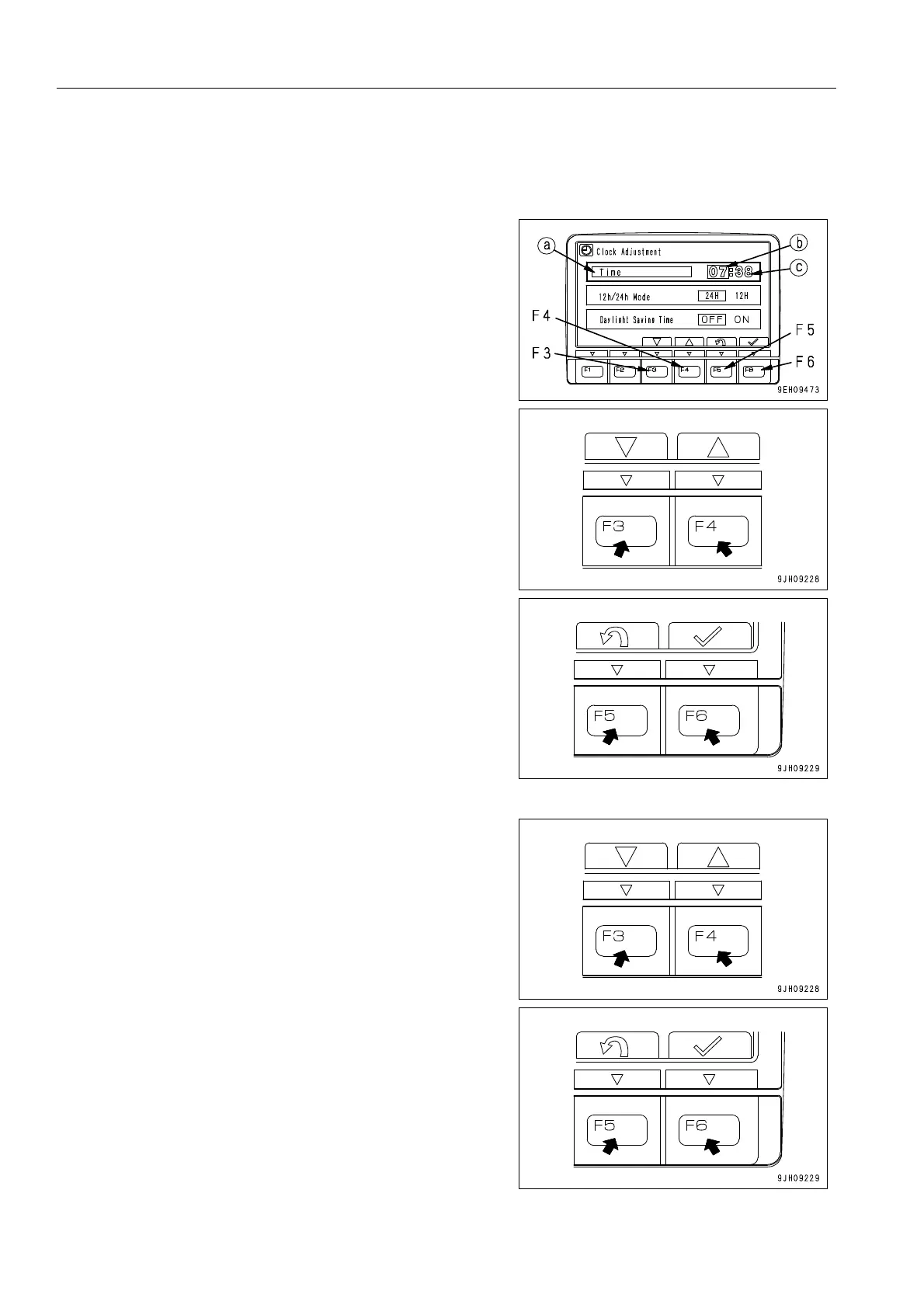3. On the clock adjustment selection screen, it is possible to carry out the following operations with switches F3