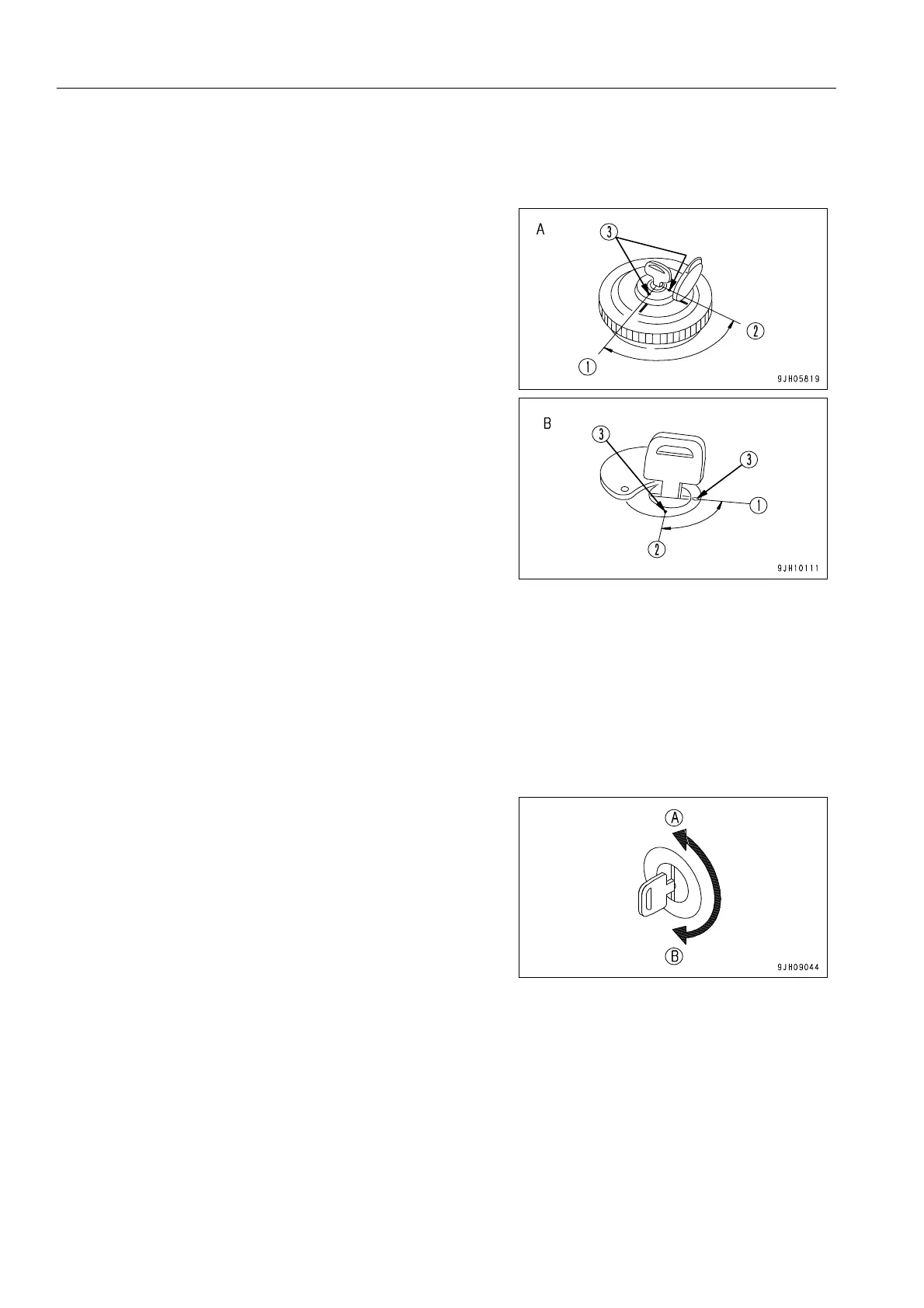 2. Turn the starting switch key counterclockwise (clockwise for the B type) and remove the key.