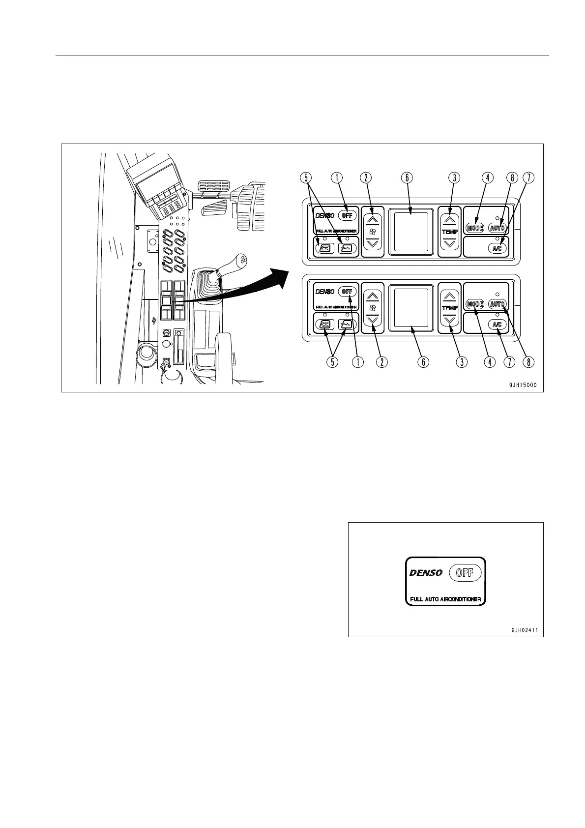 (1) OFF switch (5) FRESH/RECIRC selector switch
