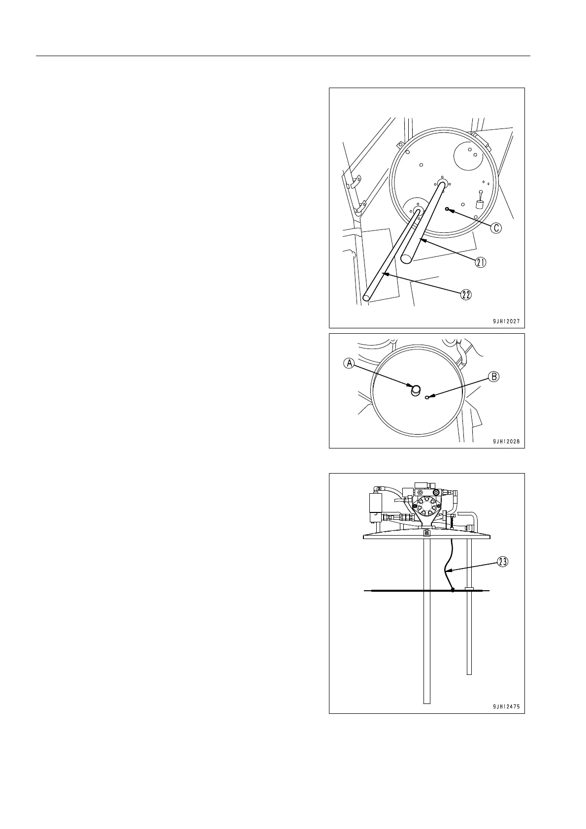 11. Insert wire (23) of the grease level sensor through hole (C)