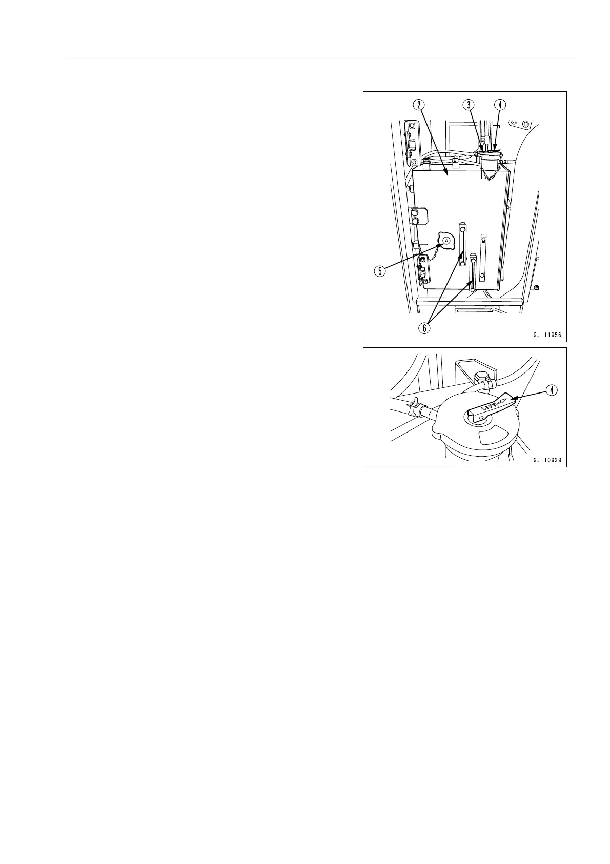4. After adding coolant, tighten cap (5) securely, then lower