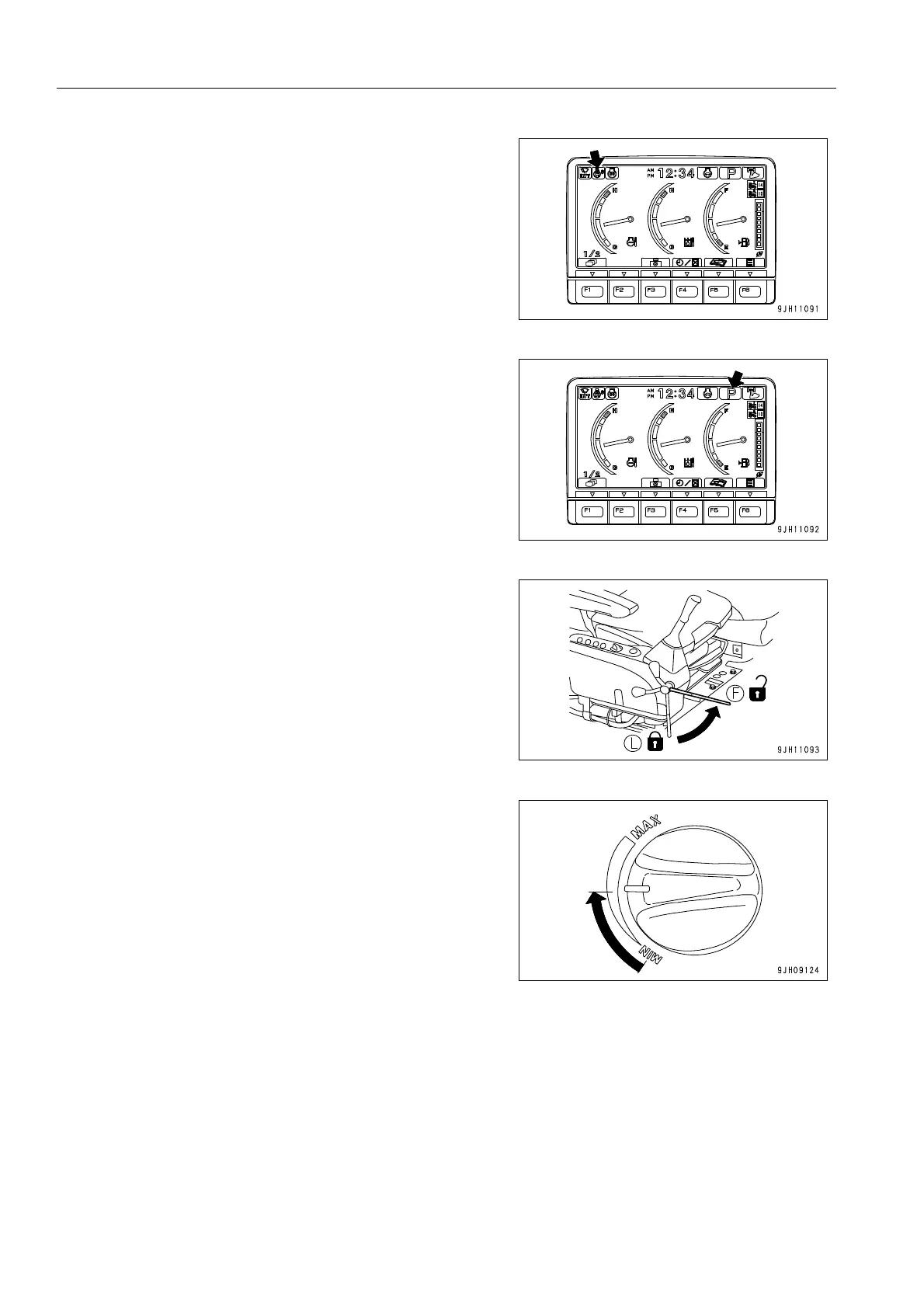 2. Turn swing lock switch (2) ON and check that the swing