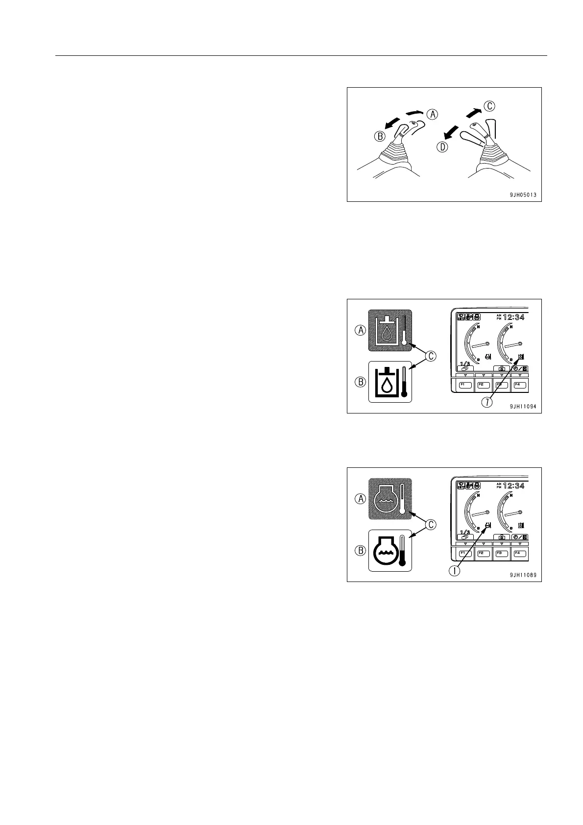 13. Check that the hydraulic oil temperature monitor and engine coolant temperature monitor are displaying the