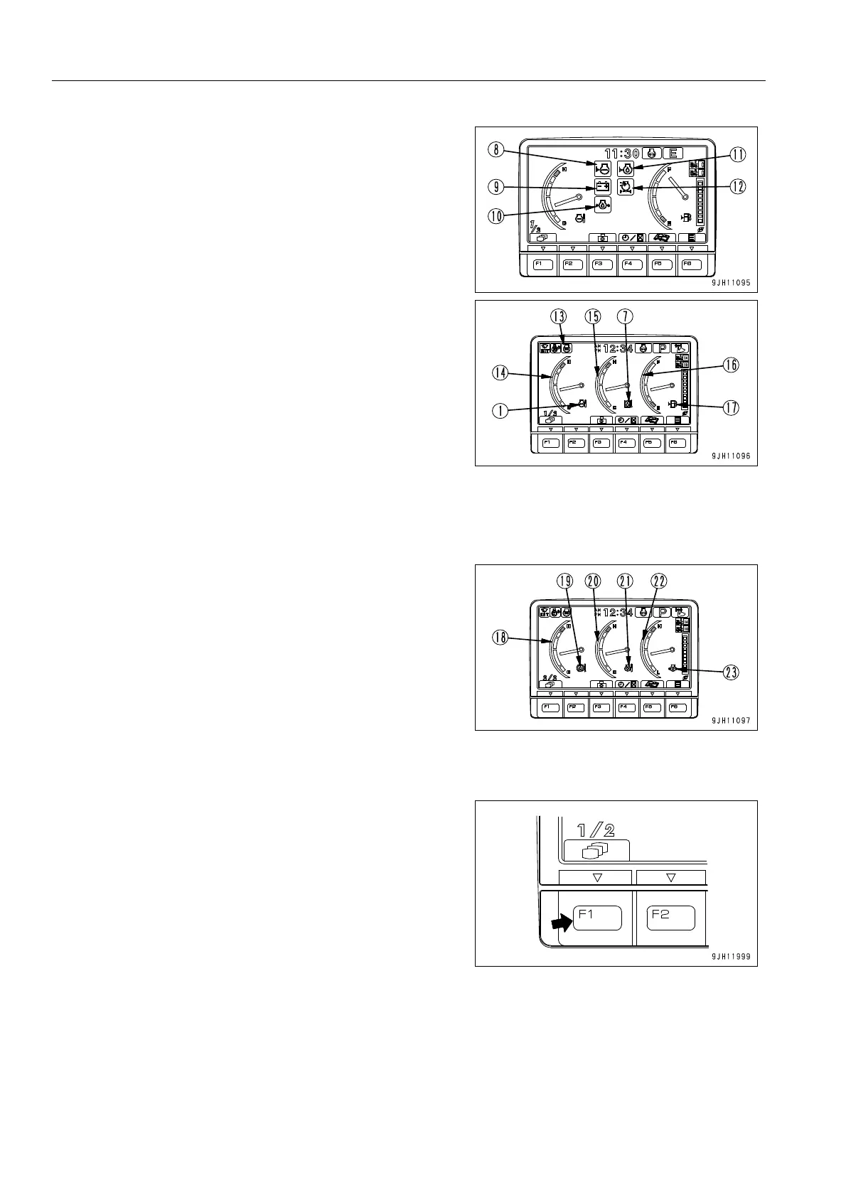 1/2 and 2/2 monitor screens can be switched by pressing func-