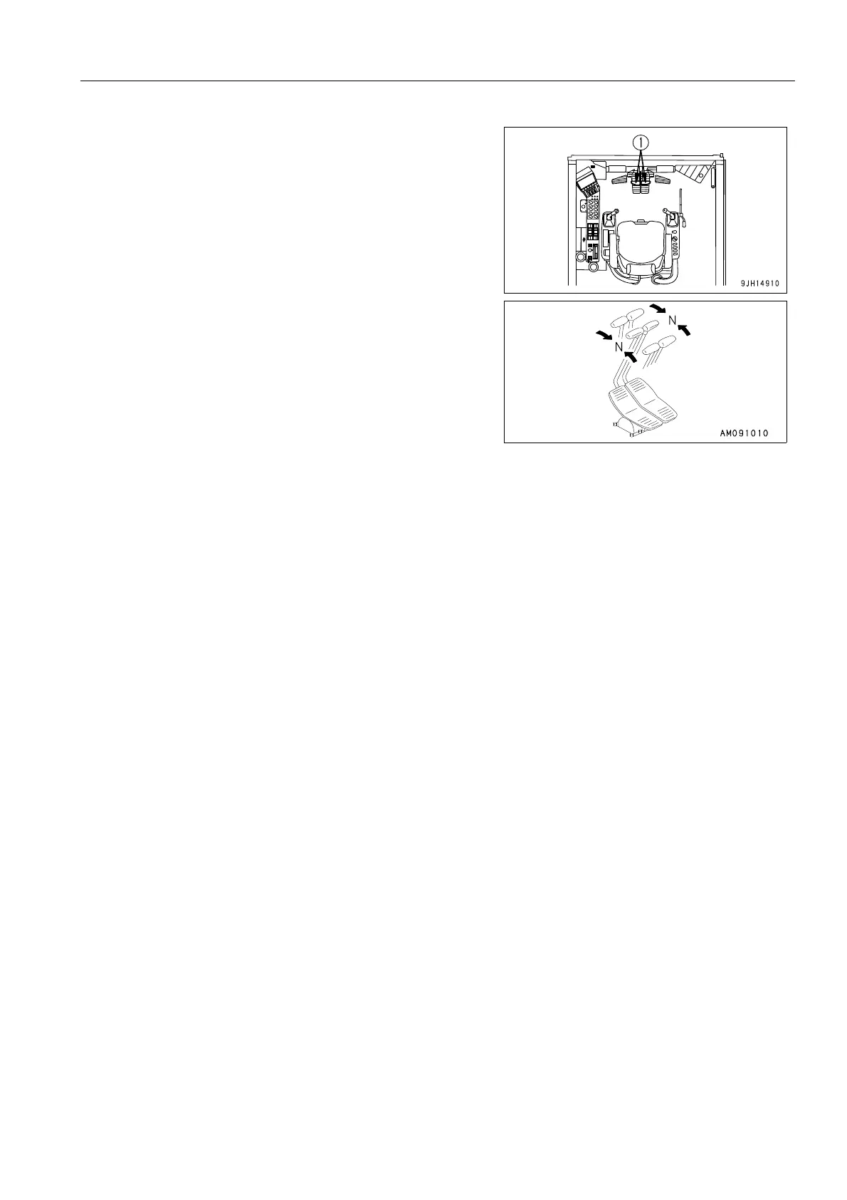 1. Put the left and right travel levers (1) in the neutral position,
