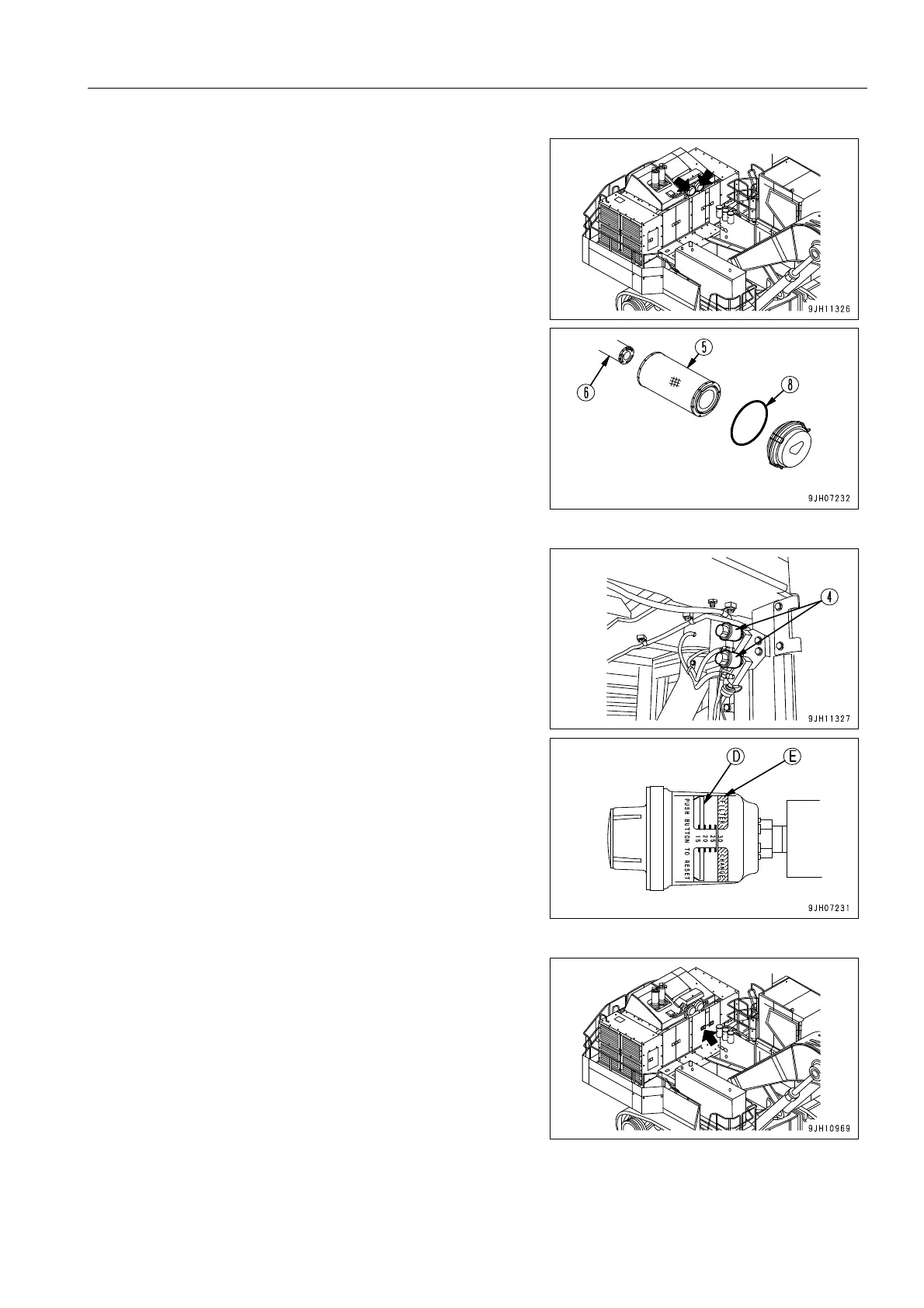 Use dust indicator (4) as a guideline for the cleaning interval for