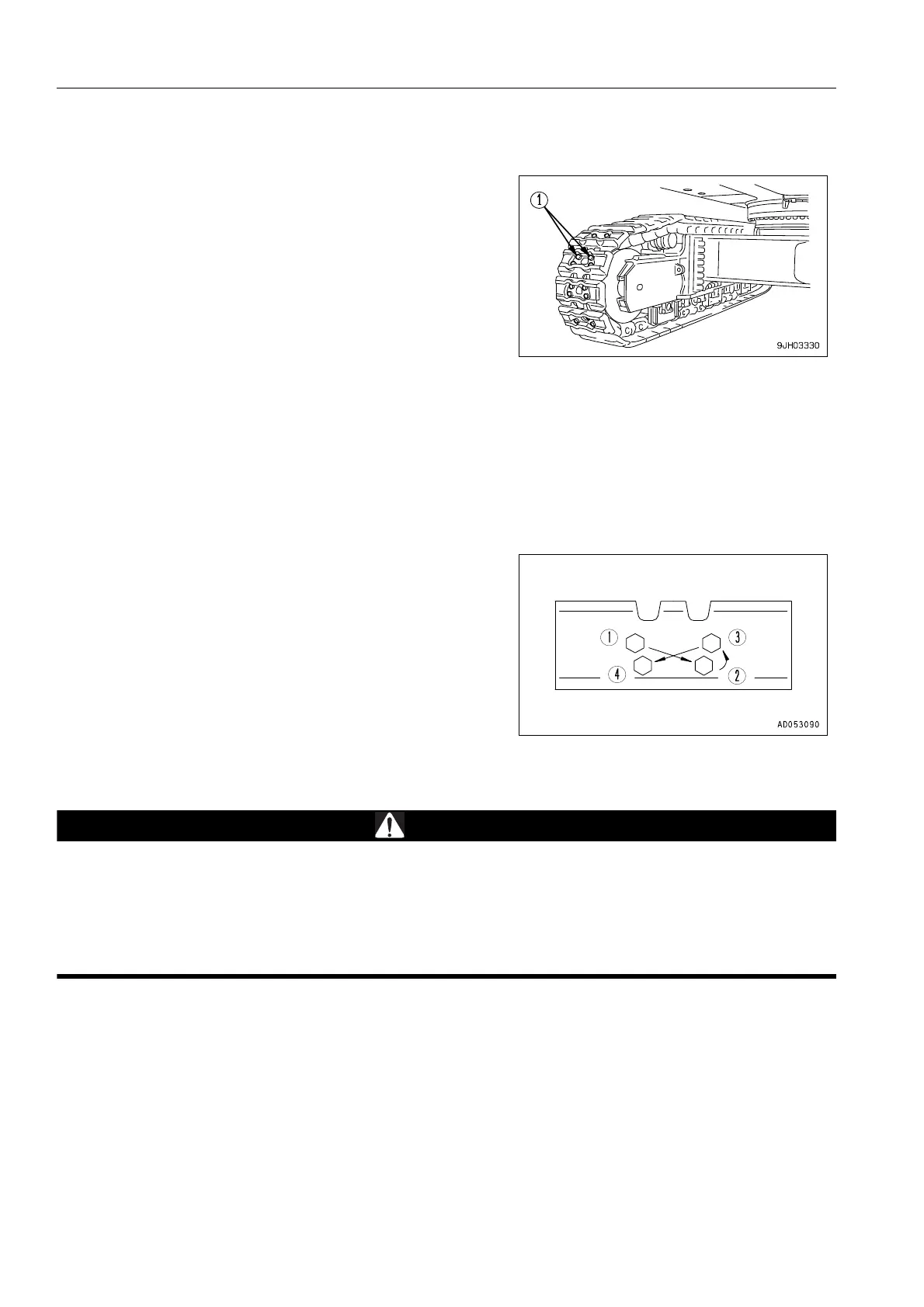 If the machine is used with track shoe bolts (1) loose, they will