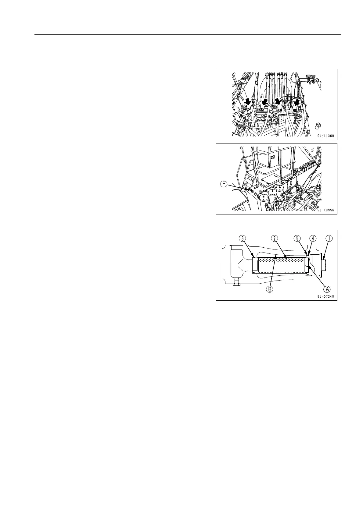 from oil filler port (F) at the top of the hydraulic tank to