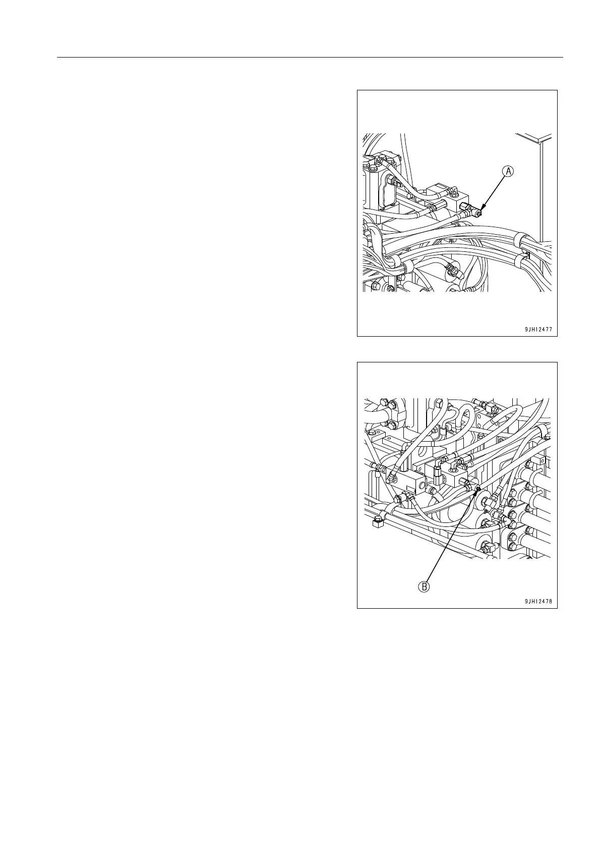 1. Start up the engine and loosen bleeder (A) and (B).