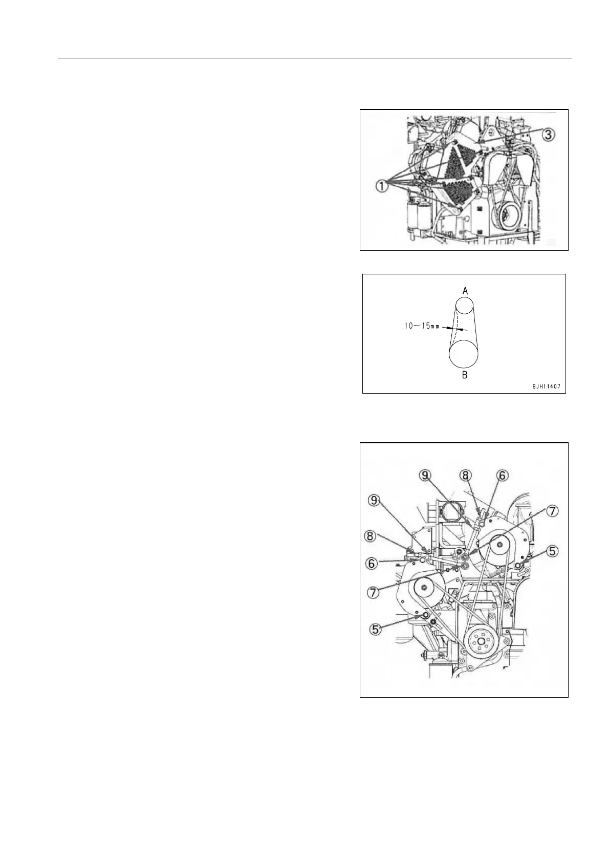 1. Remove cover (3) at the front of the engine. When 6 bolts