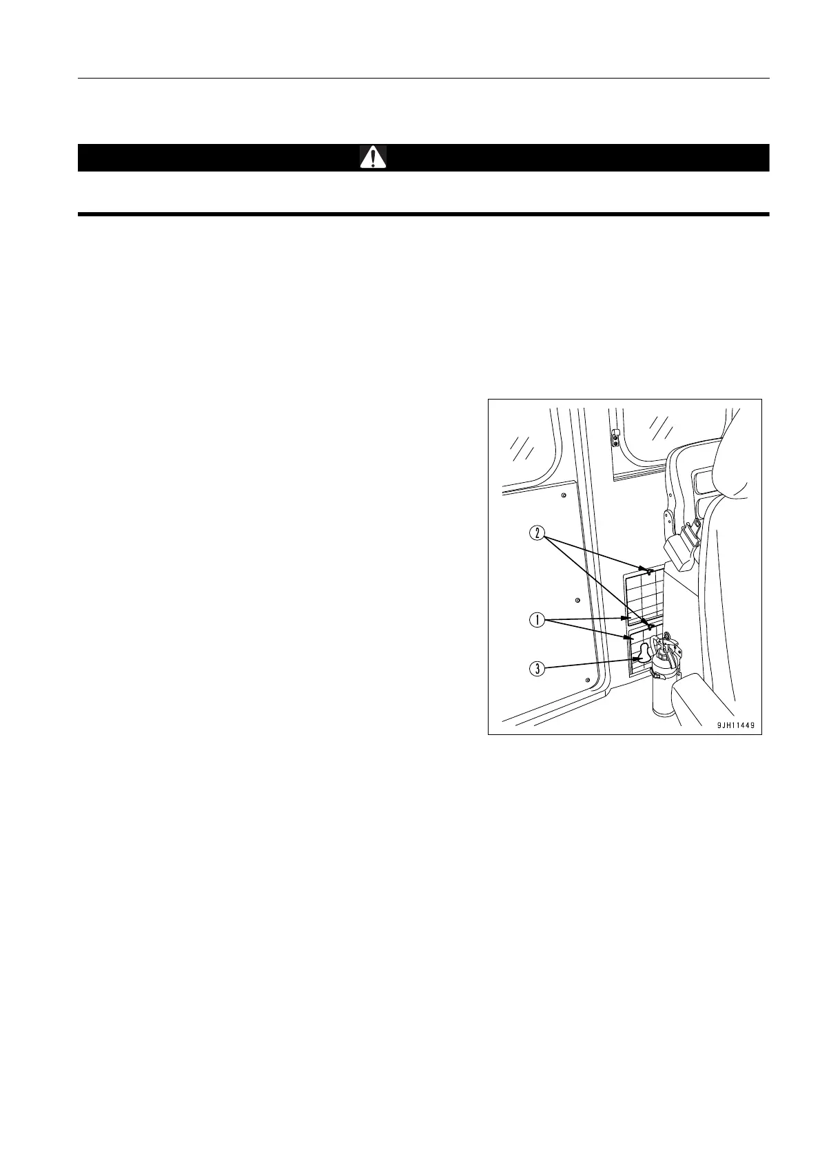 1. Loosen 2 lock screws (2) for box cover (1) behind the