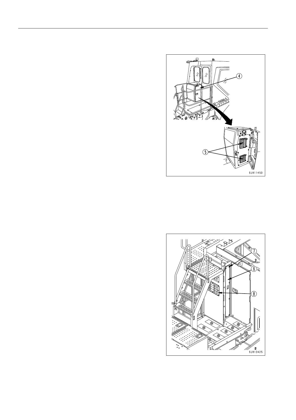 Loosen six securing bolts (7) and open side cover (6) in the cab