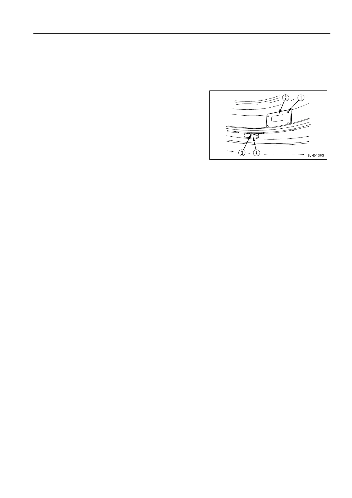 1. Remove 4 bolts (1) on the inside of the track frame, then