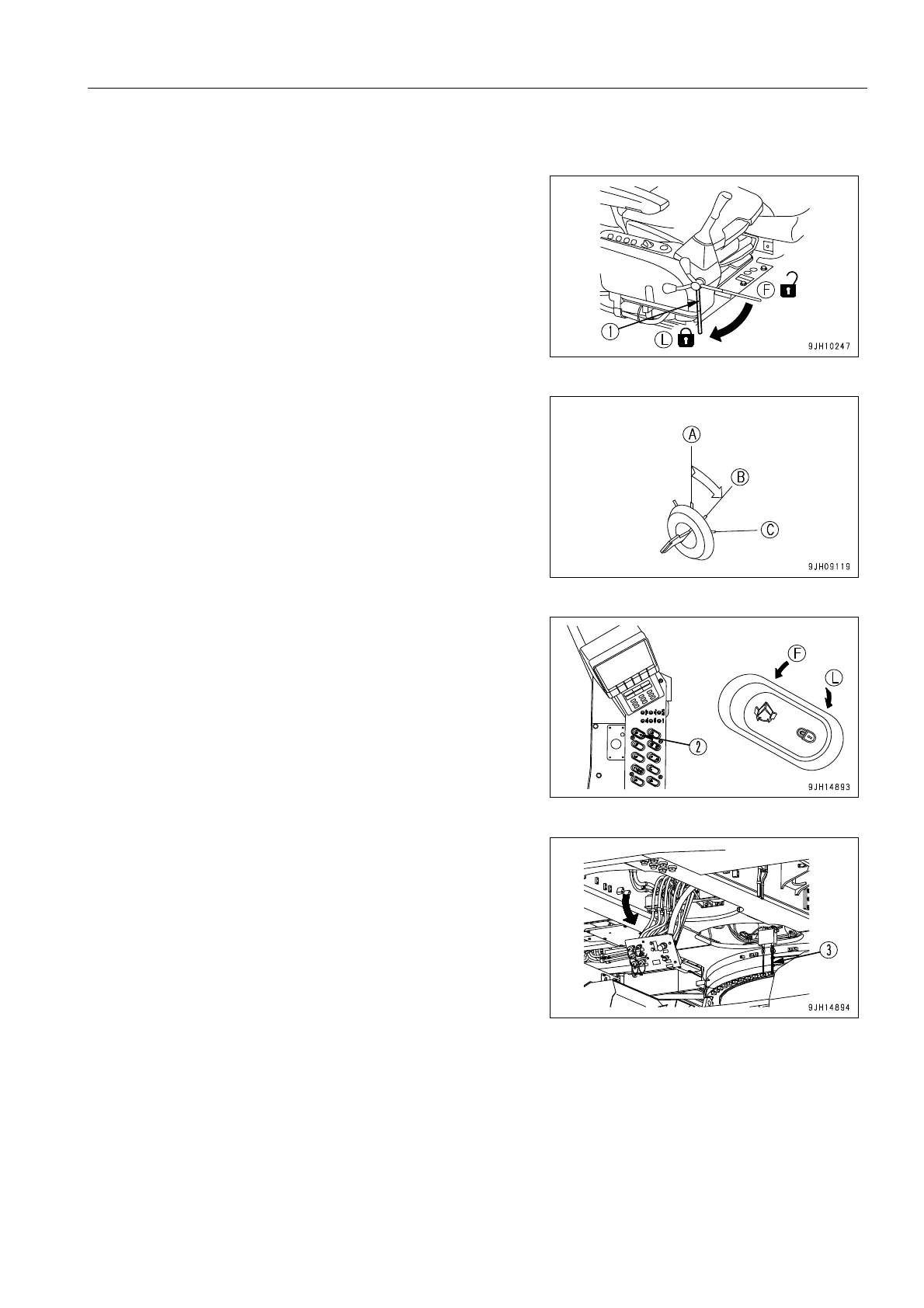 1. Check the lock lever (1) is at the LOCK position (L). When