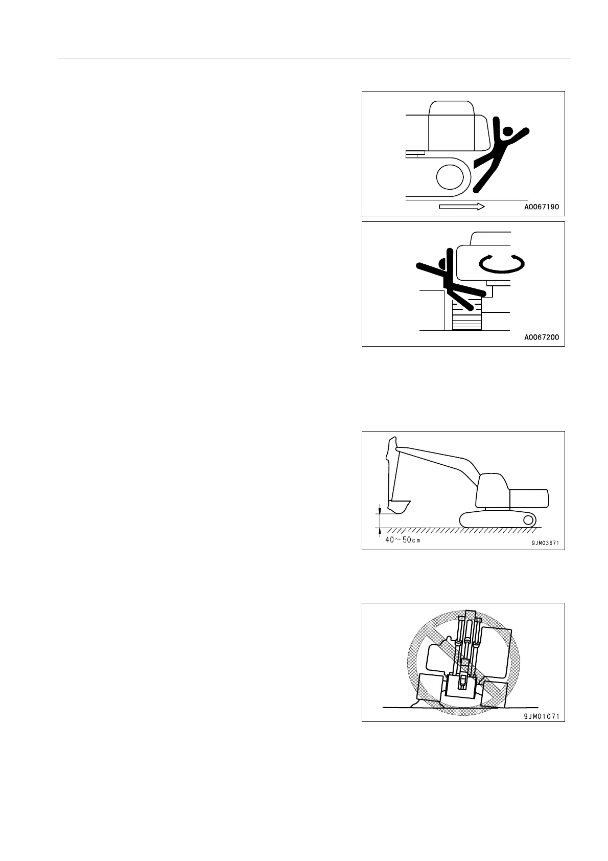 q When traveling or carrying out operations, always keep a safe distance from people, structures, or other