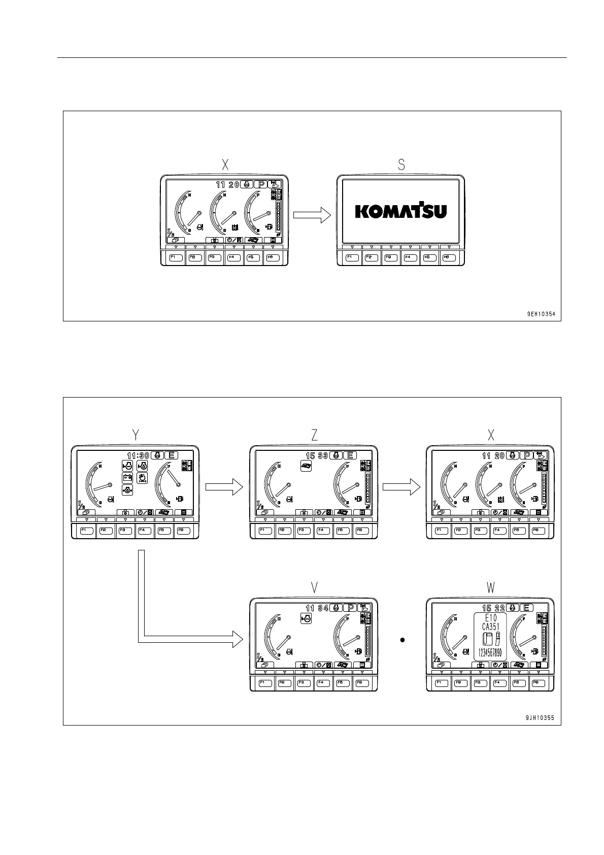 nance interval warning screen (Z), Warning screen (V), or Error screen (W).