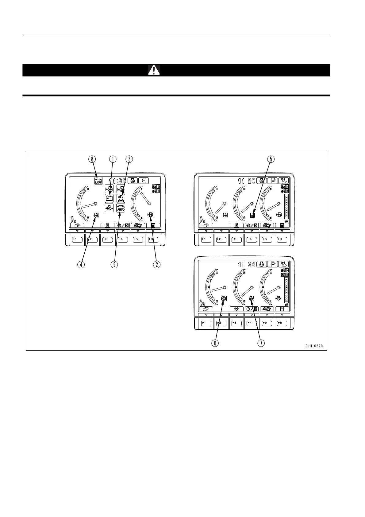 (4) Engine water temperature monitor (9) Auto greasing abnormality monitor