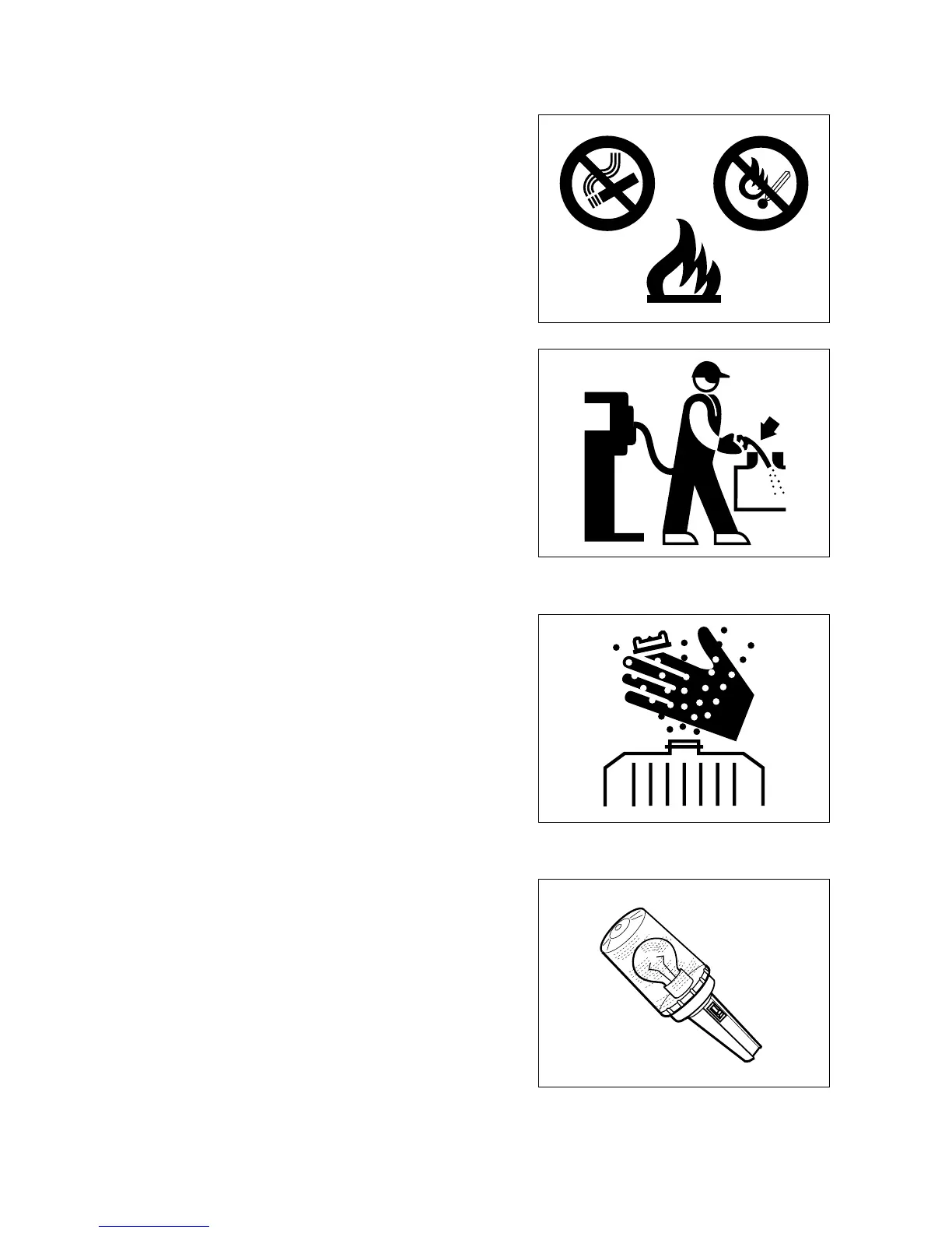 • Spilled fuel or oil make the ground slippery and may cause ac-