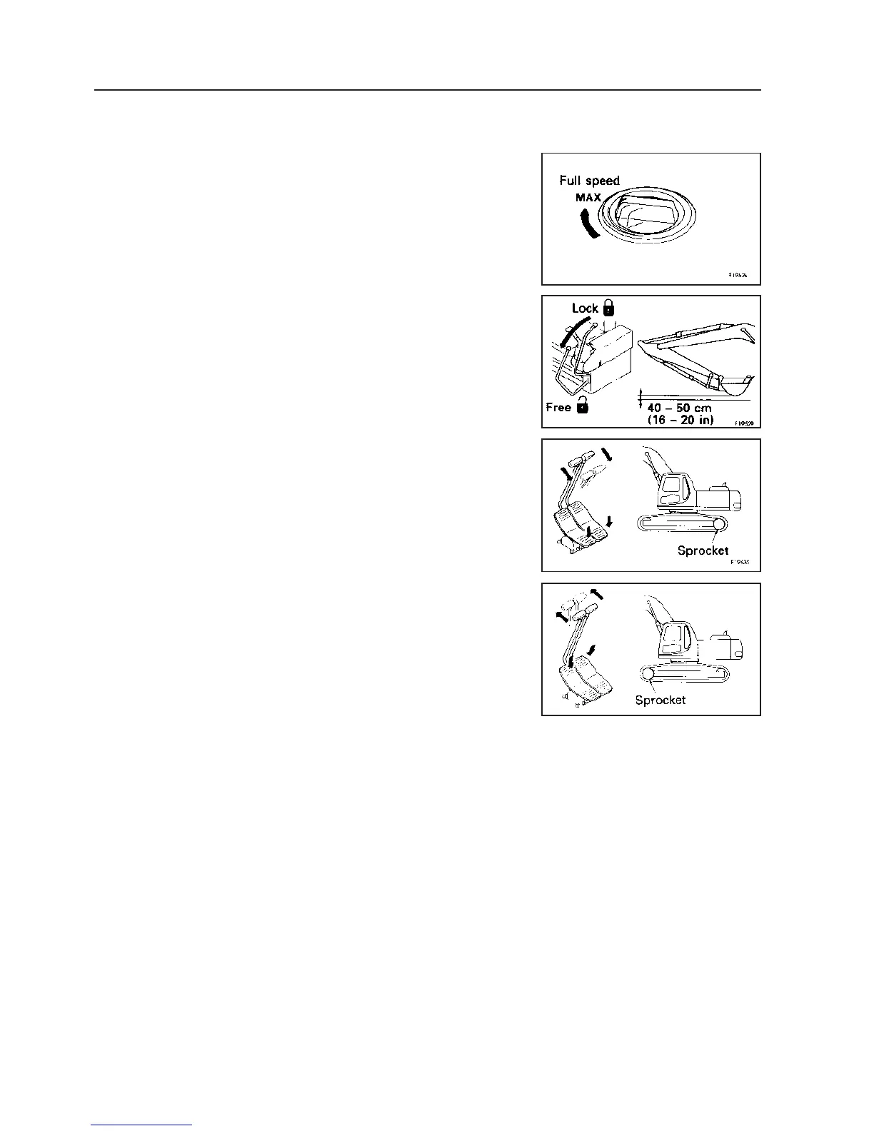 3. Set safety lock lever d in the FREE position, fold the work equip-